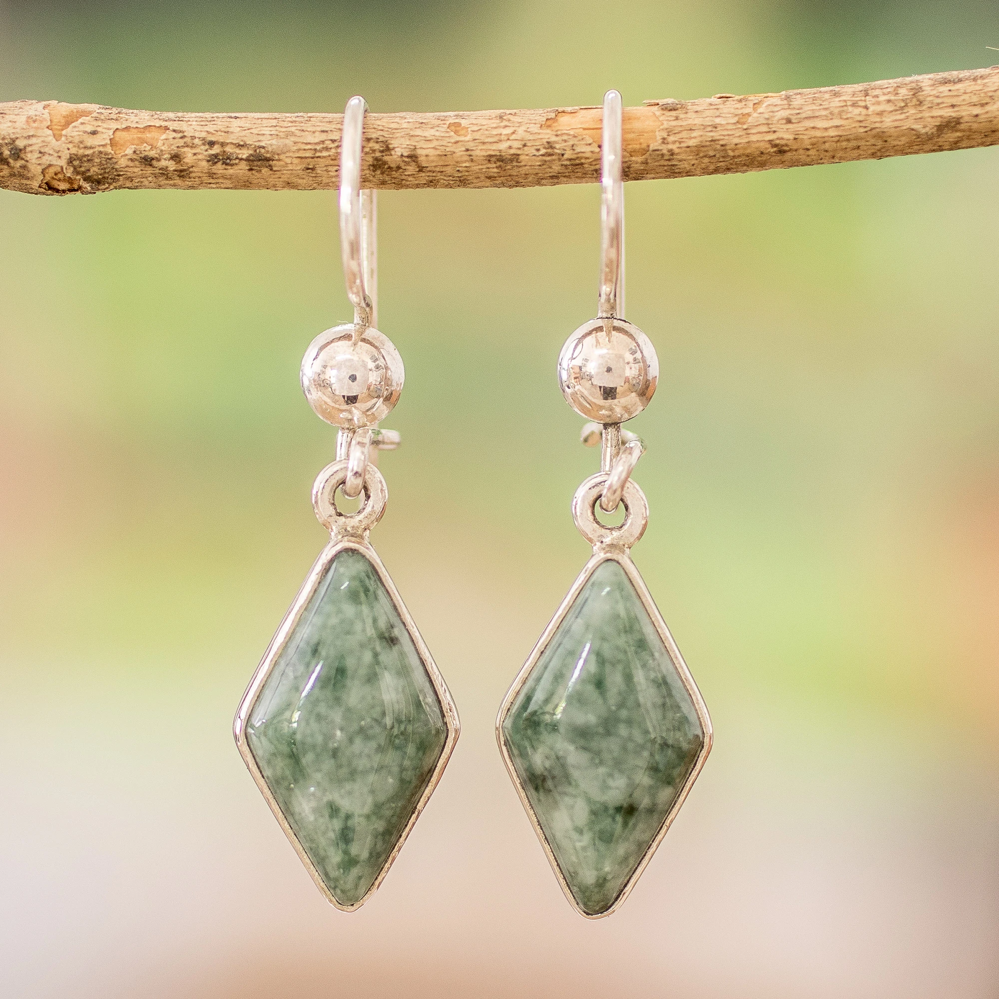 Guatemalan Green Jade Diamond Shape Earrings, 'Verdant Diamond'