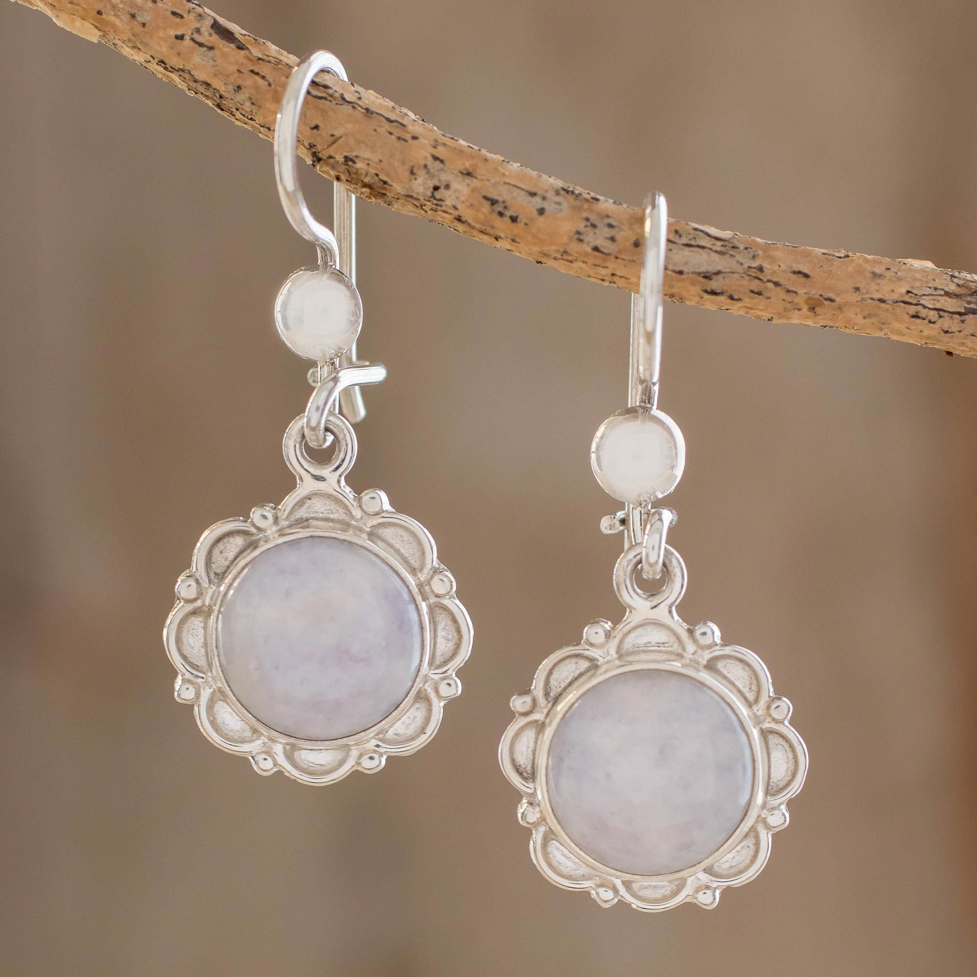 Guatemalan Hand Crafted Lilac Jade Dangle Earrings, 'Lilac Dahlias'