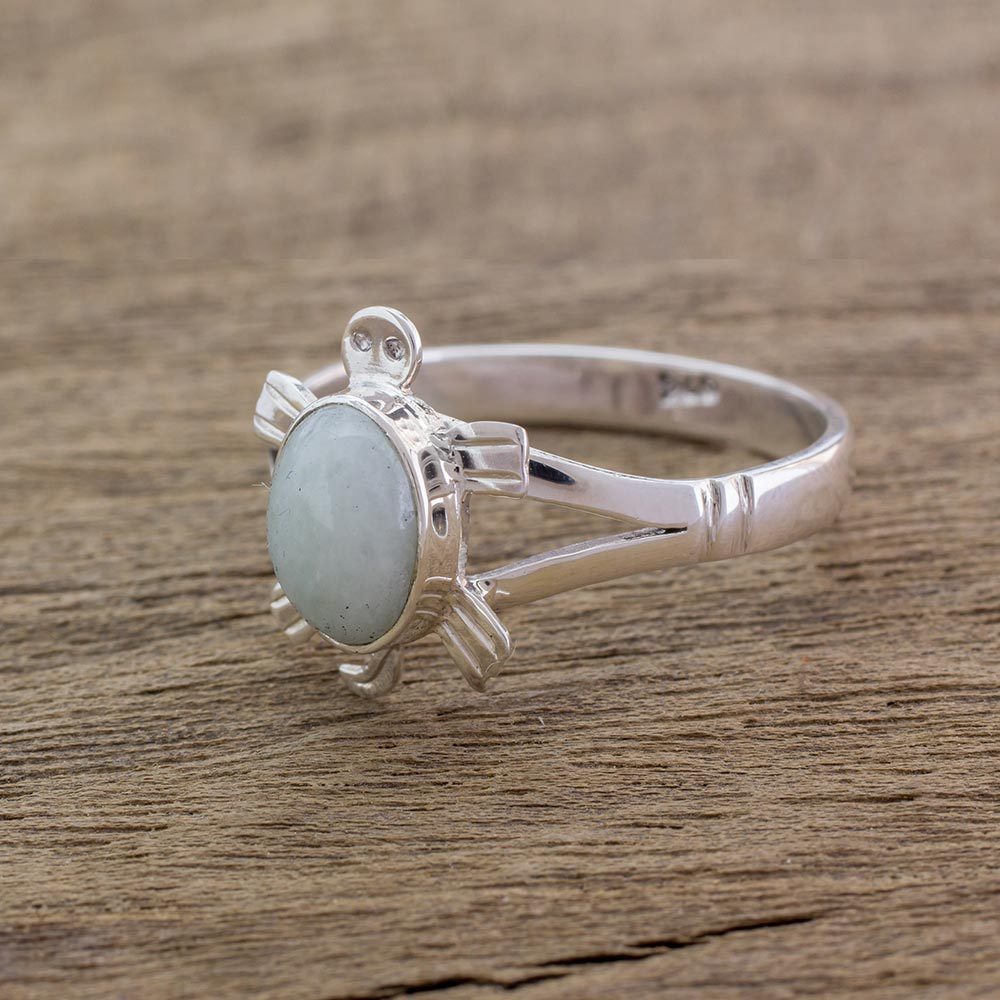 Guatemalan Handcrafted Light Green Jade Ring, 'Light Green Marine Turtle'