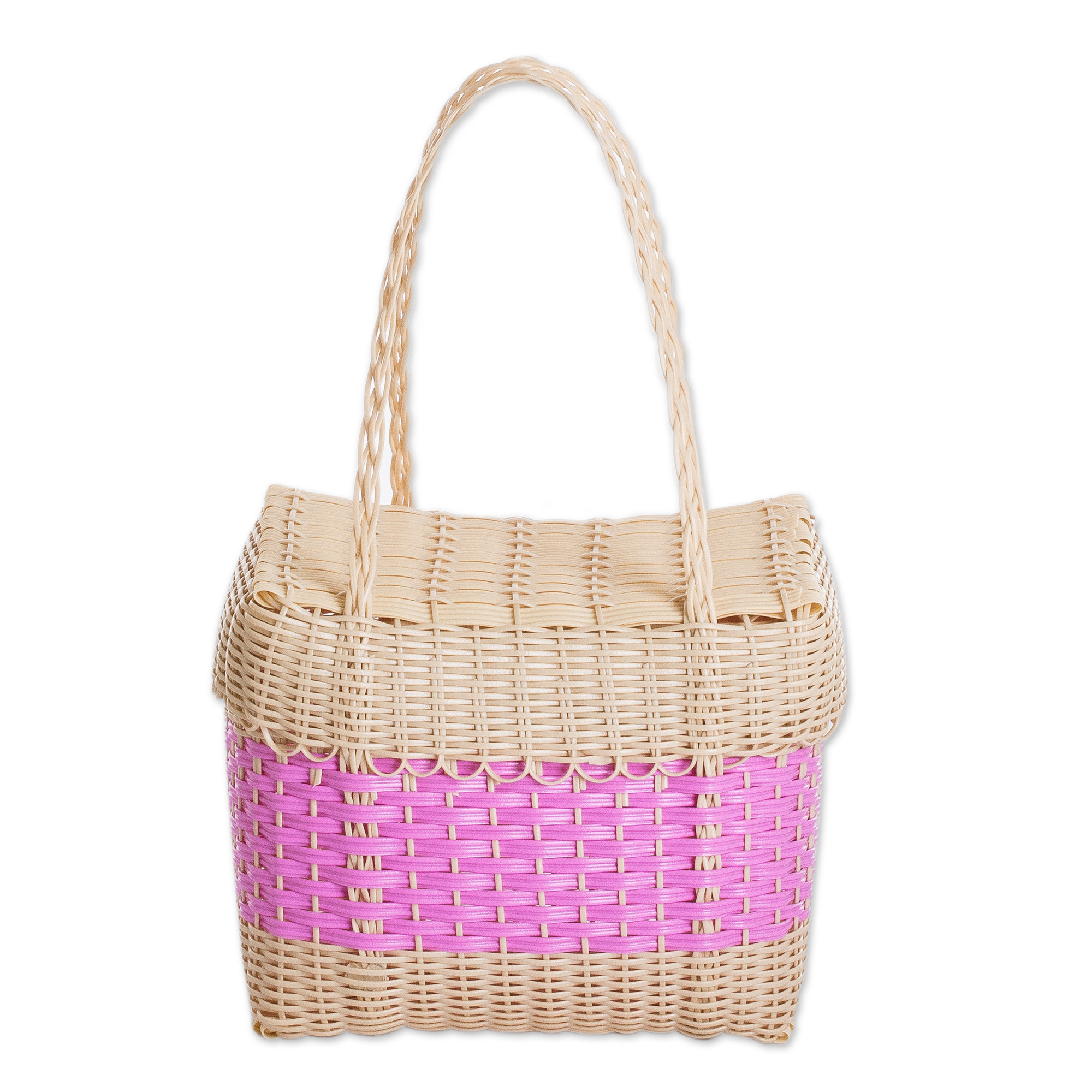 Guatemalan Handwoven Basket in Pink and Cornsilk, 'Pink Field'