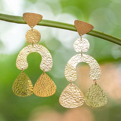 Liberate the golden gleam in your eyes with a pair by Bali's Wayan Karang. Inspired by abstract themes, the designer creates these 22k gold-plated dangle earrings, whose hammered pieces unite to create a statement of luxurious and free beauty.