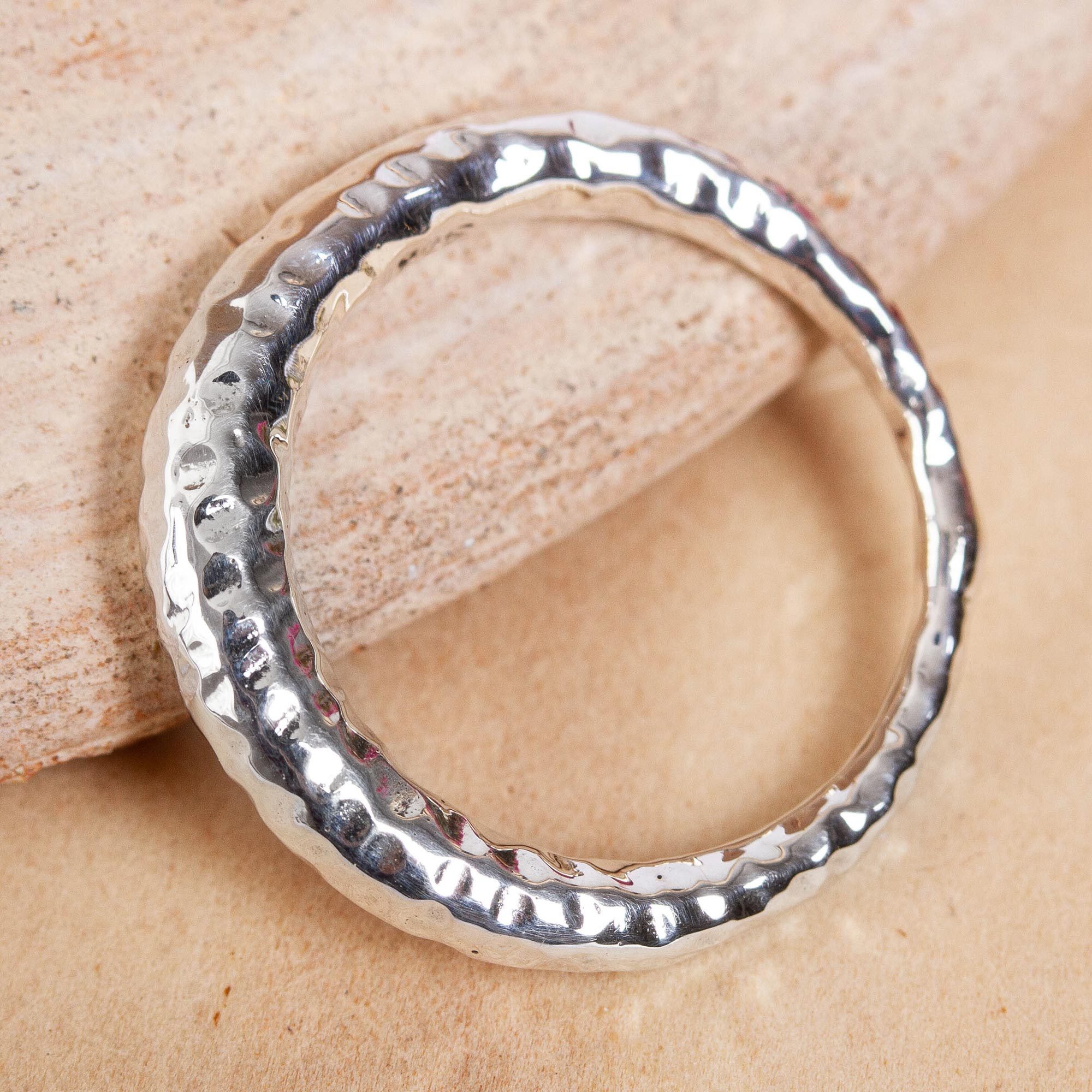 Hammered Taxco Sterling Silver Band Ring from Mexico, 'Ring of Freedom'