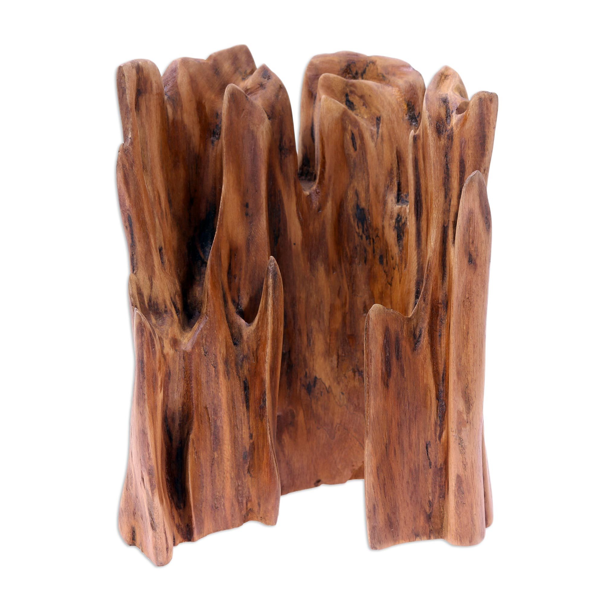 Artisan Suresh Pant of India transforms wood he finds on walks in the jungle into beautiful sculpture. Inspired by the natural shape of this piece of tun wood, the artisan showcases the organic beauty of nature with the sculpture's tall, graceful lines like a stand of ancient trees.