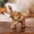 Hand-Carved Marble Sculpture of Brown Elephant Raising Trunk, 'Chestnut Trunk Charm'