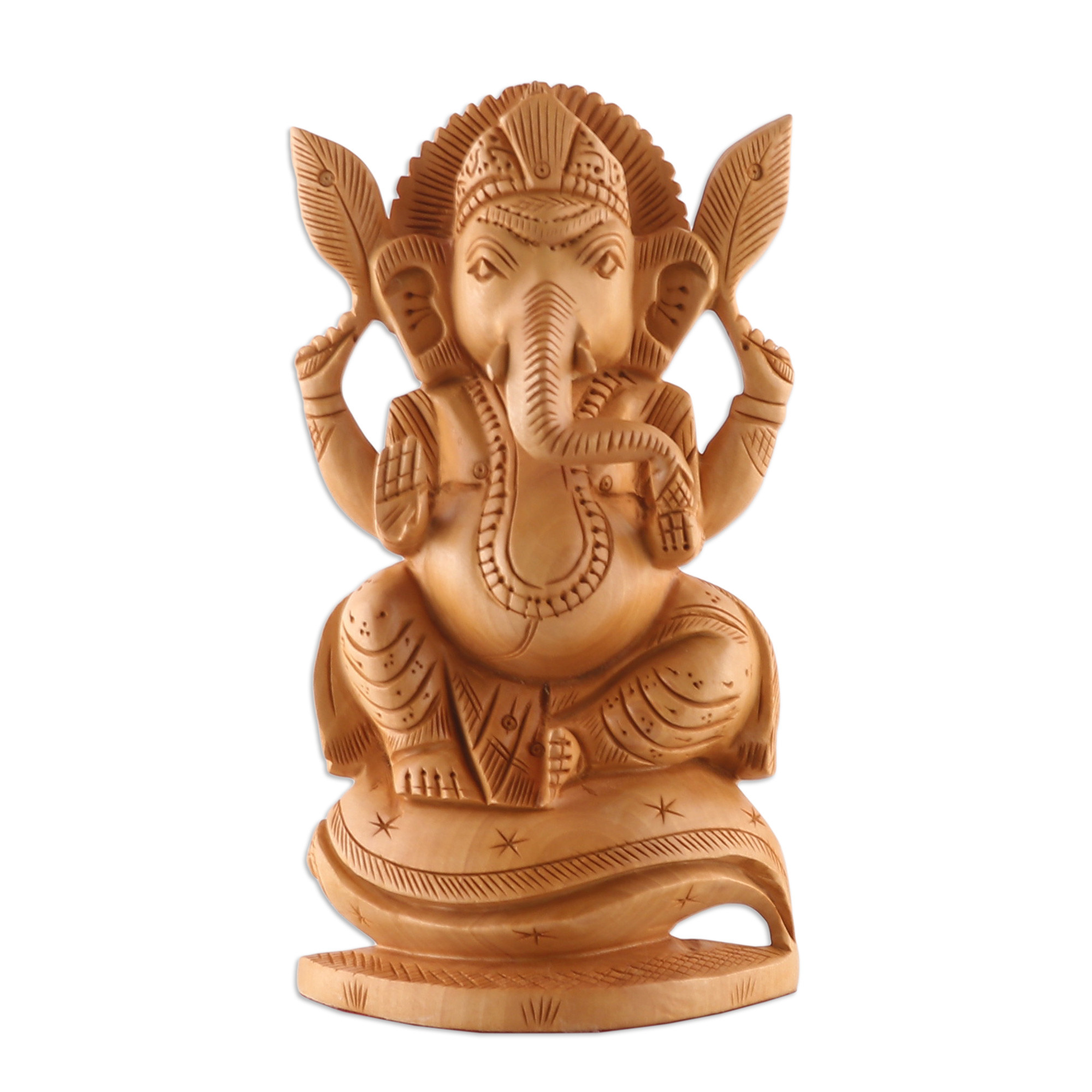 Lord Ganesha blesses his devotees with the beginning of a virtuous and successful life. Artisans Motilal and Ayush honor the deity's benevolent and divine spirit in this kadam wood sculpture, made in the Indian region's regal style. Polished for a lustrous look and adorned with exquisite details, the artwork is also an altar to wisdom and prosperity.