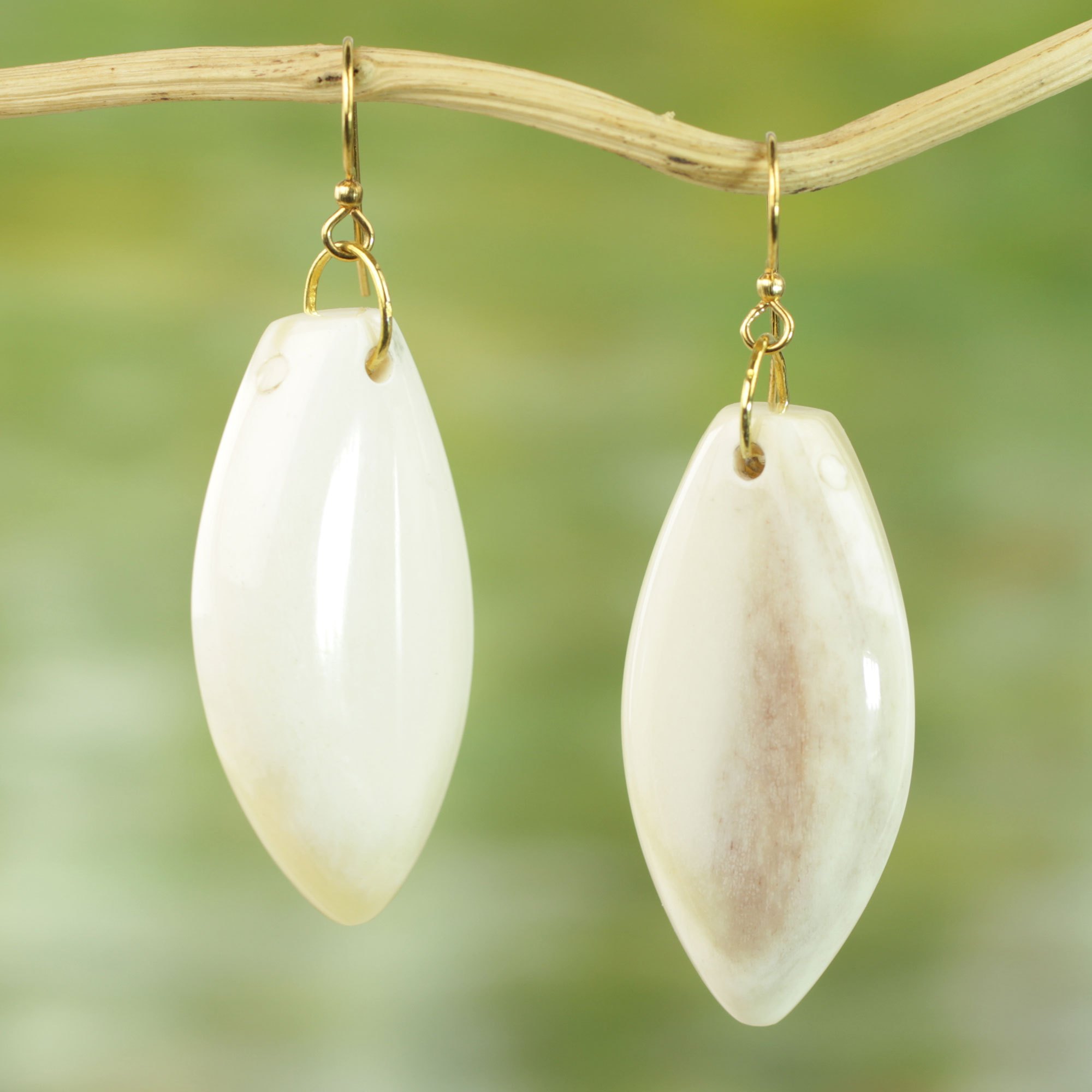 Hand Crafted Cow Bone Dangle Earrings from West Africa, 'Natural Path'