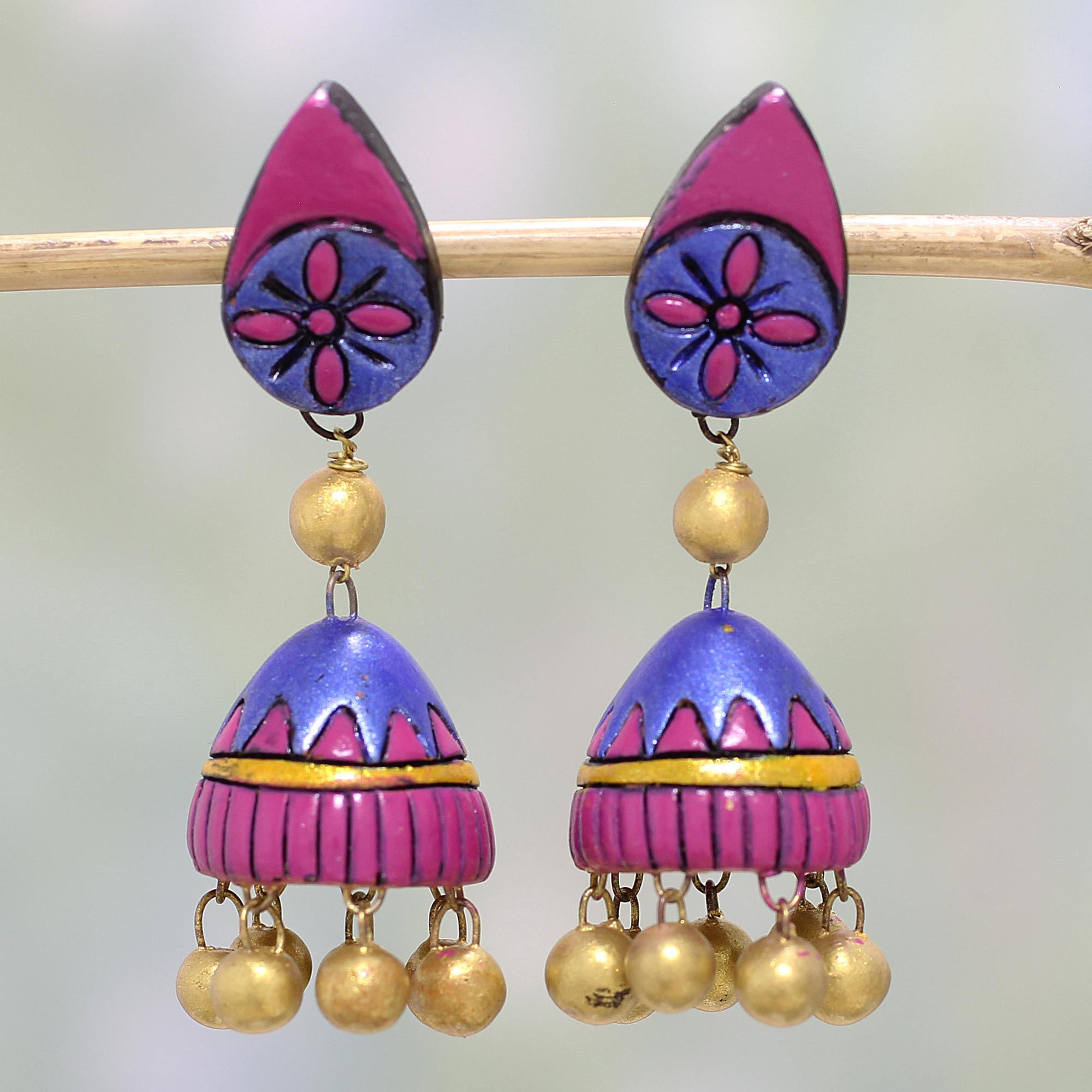 "Terracotta jewelry is crafted with clay which is procured from the river bed. After the piece is ready, it is baked in the oven and then hand-painted with vibrant colors and finally varnished with toxic-free lacquer.
