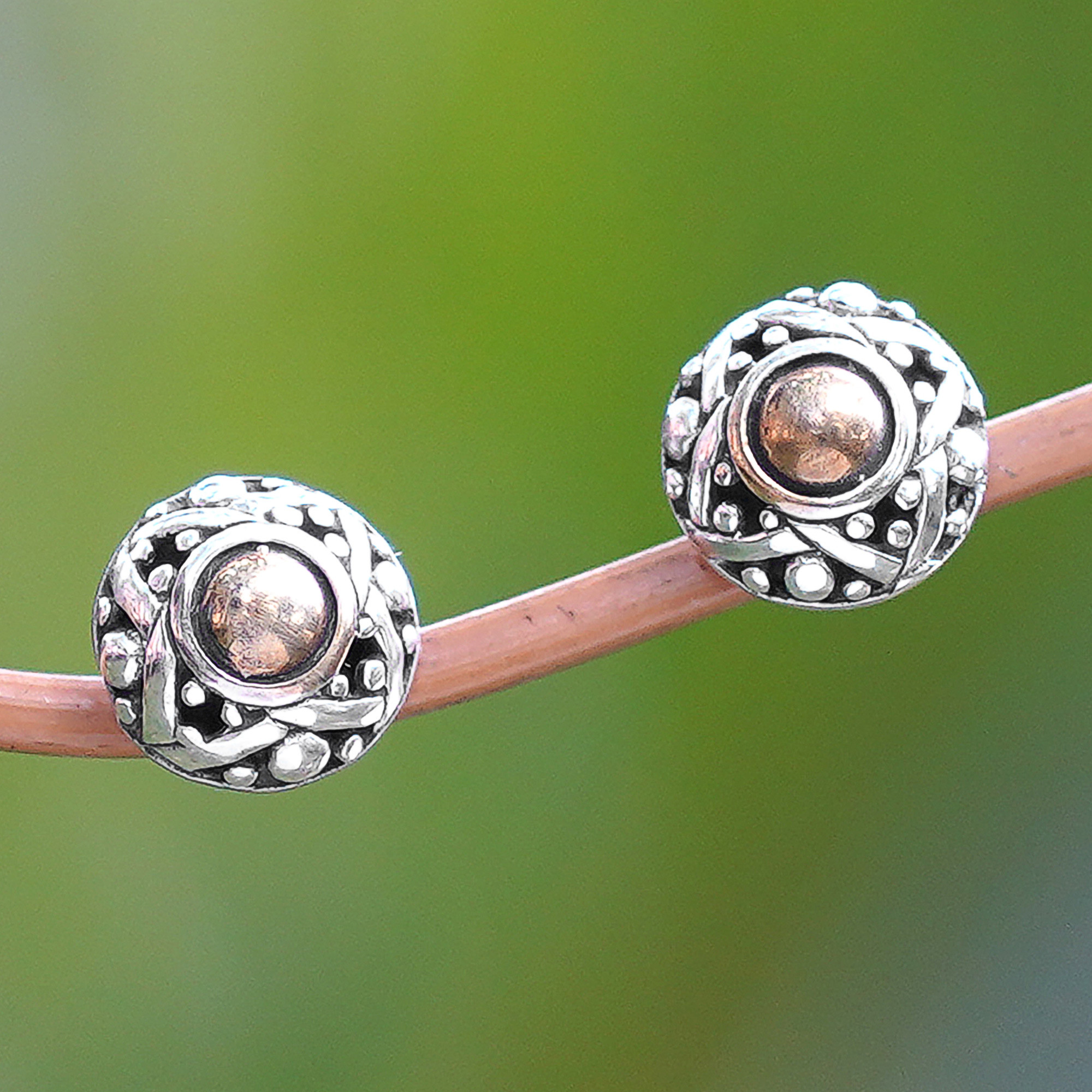 Hand Crafted Gold Accent Button Earrings, 'Majapahit Shield'