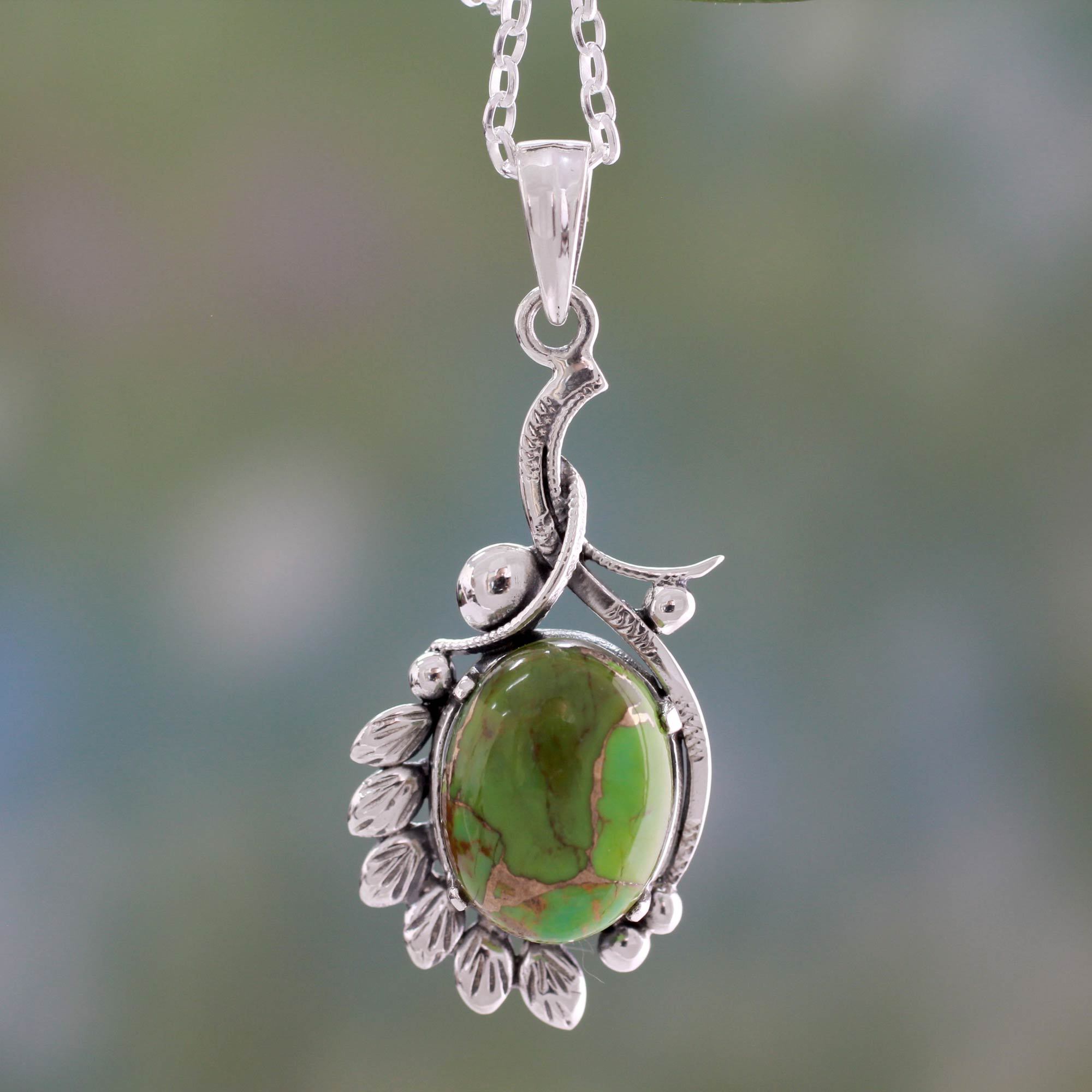 Hand Crafted Green Composite Turquoise Necklace, 'Enchanted Forest'