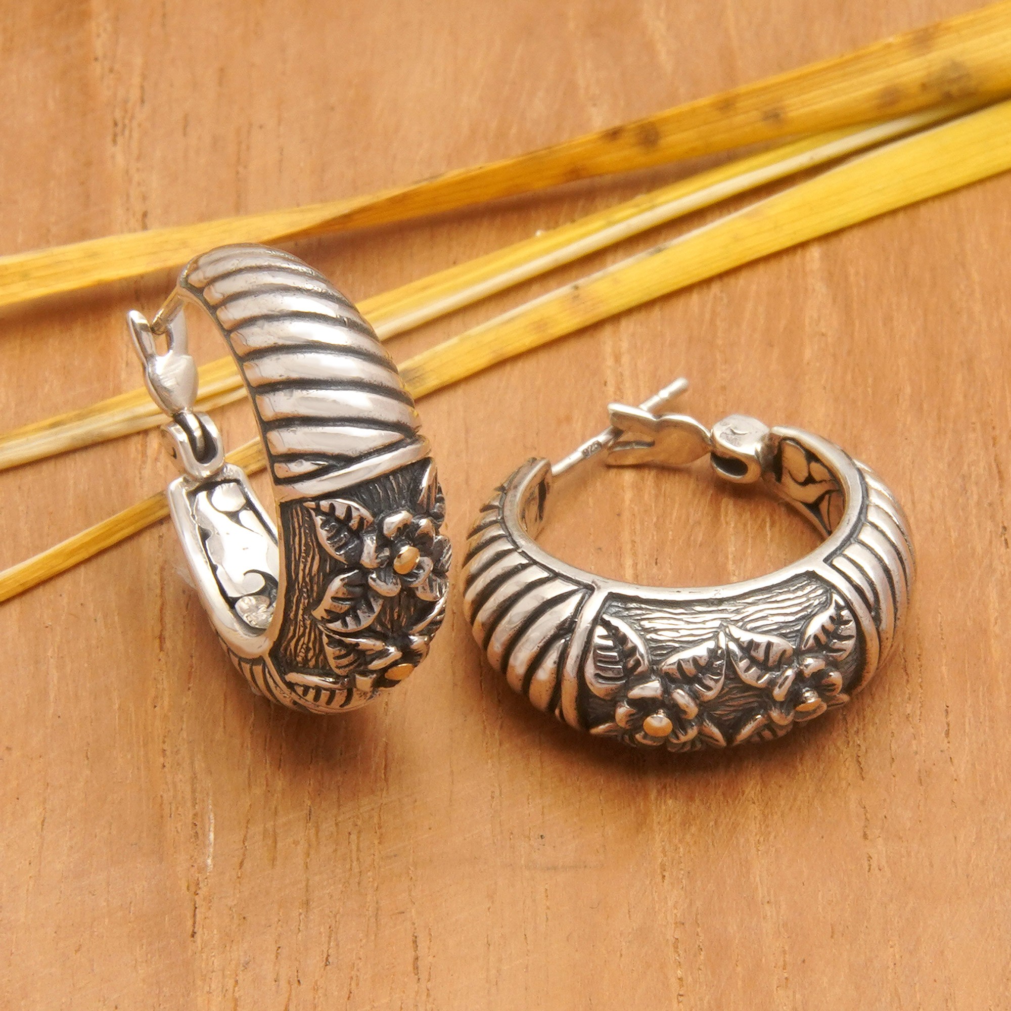 Hand Crafted Indonesian Sterling Silver Hoop Earrings, 'Jasmine Moon'