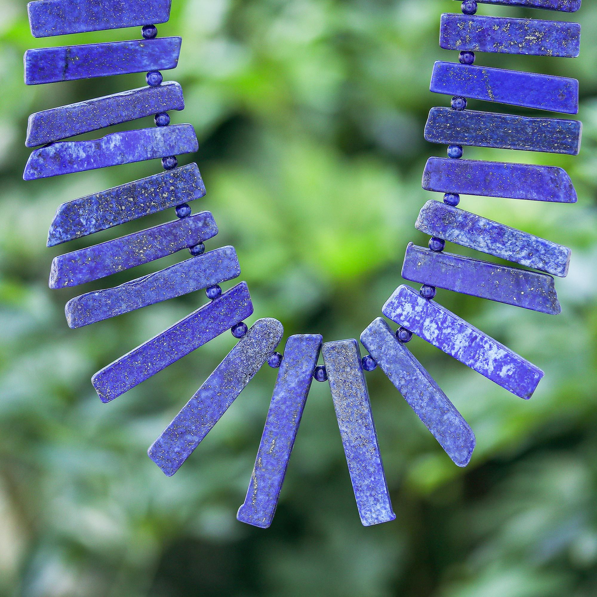 Hand Crafted Lapis Lazuli Beaded Necklace, 'Tribal Design'