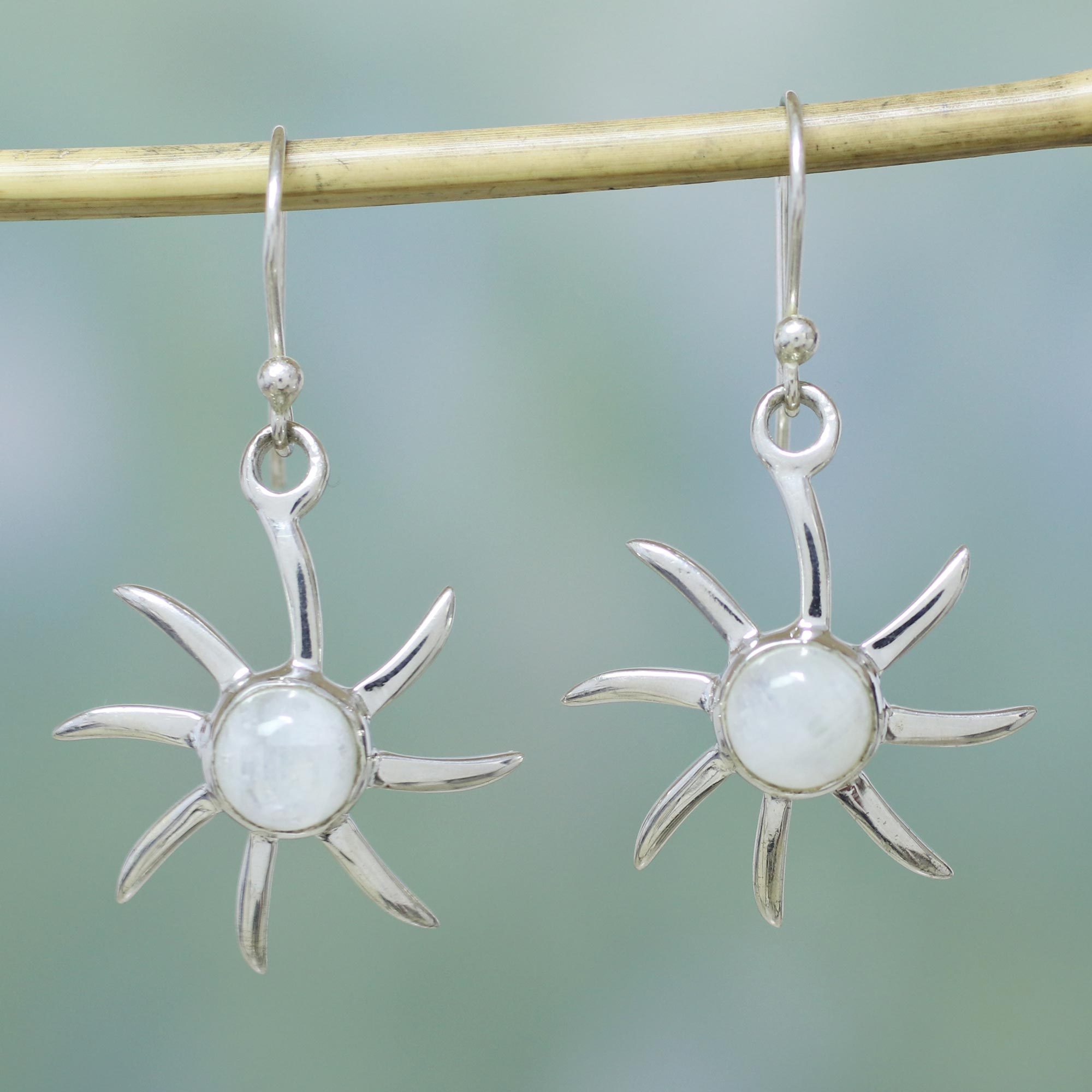 Hand Crafted Moonstone and Sterling Silver Dangle Earrings, 'Rainbow Sun'