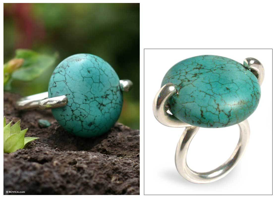 Hand Crafted Reconstituted Turquoise and Silver Ring, 'Quietude'
