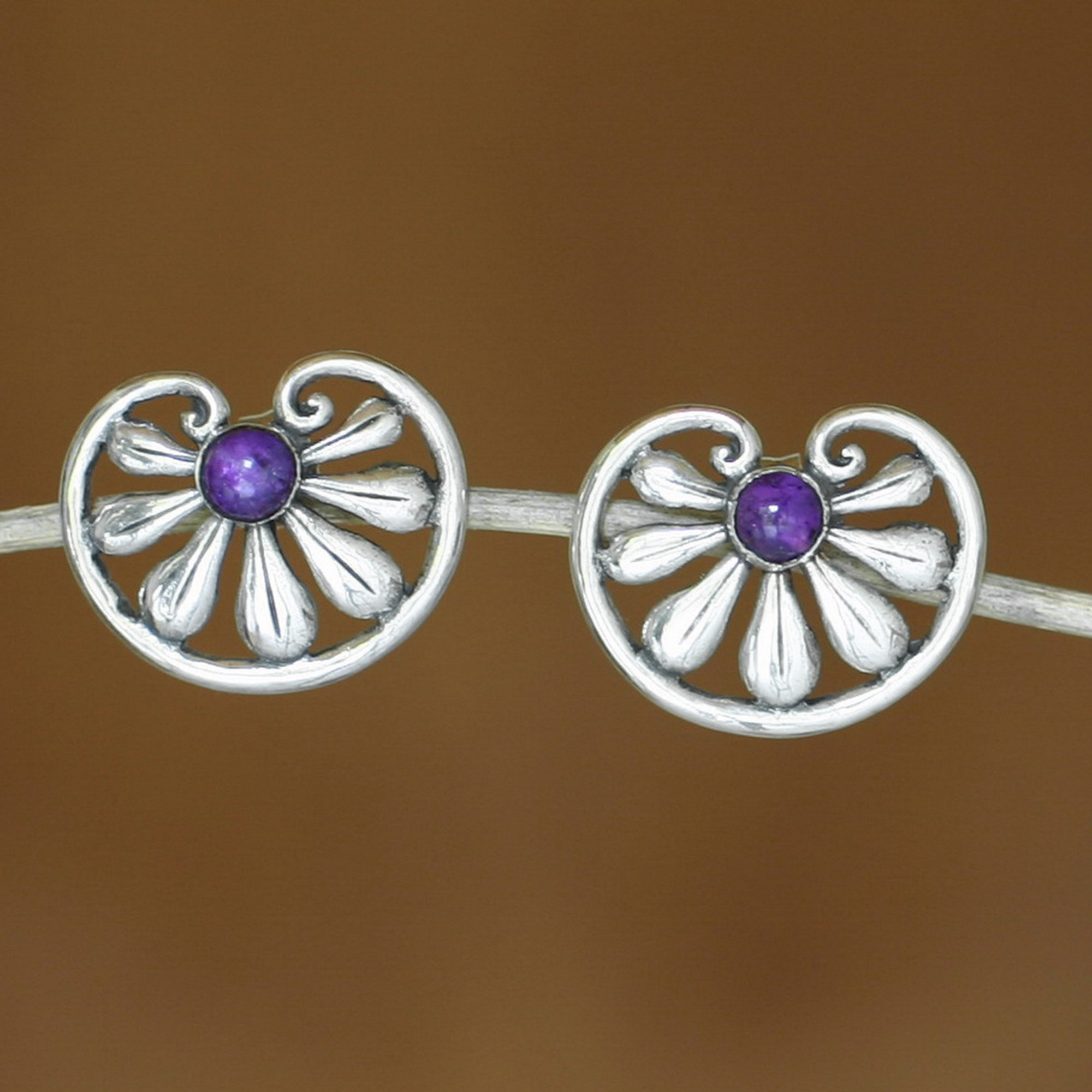 Hand Crafted Sterling Silver and Amethyst Earrings, 'Flowering Silver'