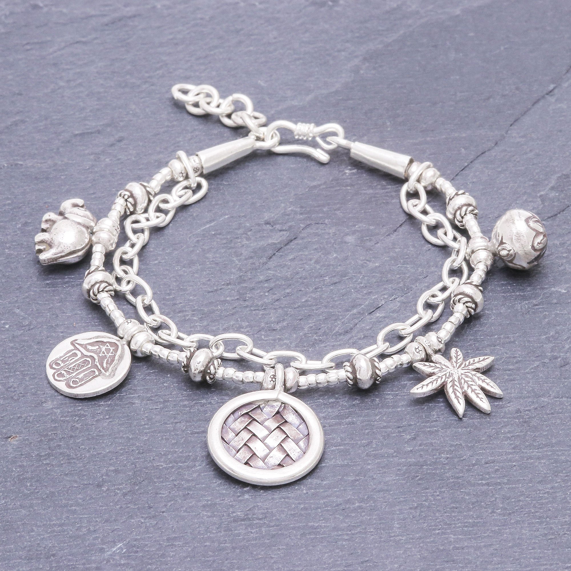 Hand Crafted Sterling Silver Charm Bracelet, 'Ethnic Charm'