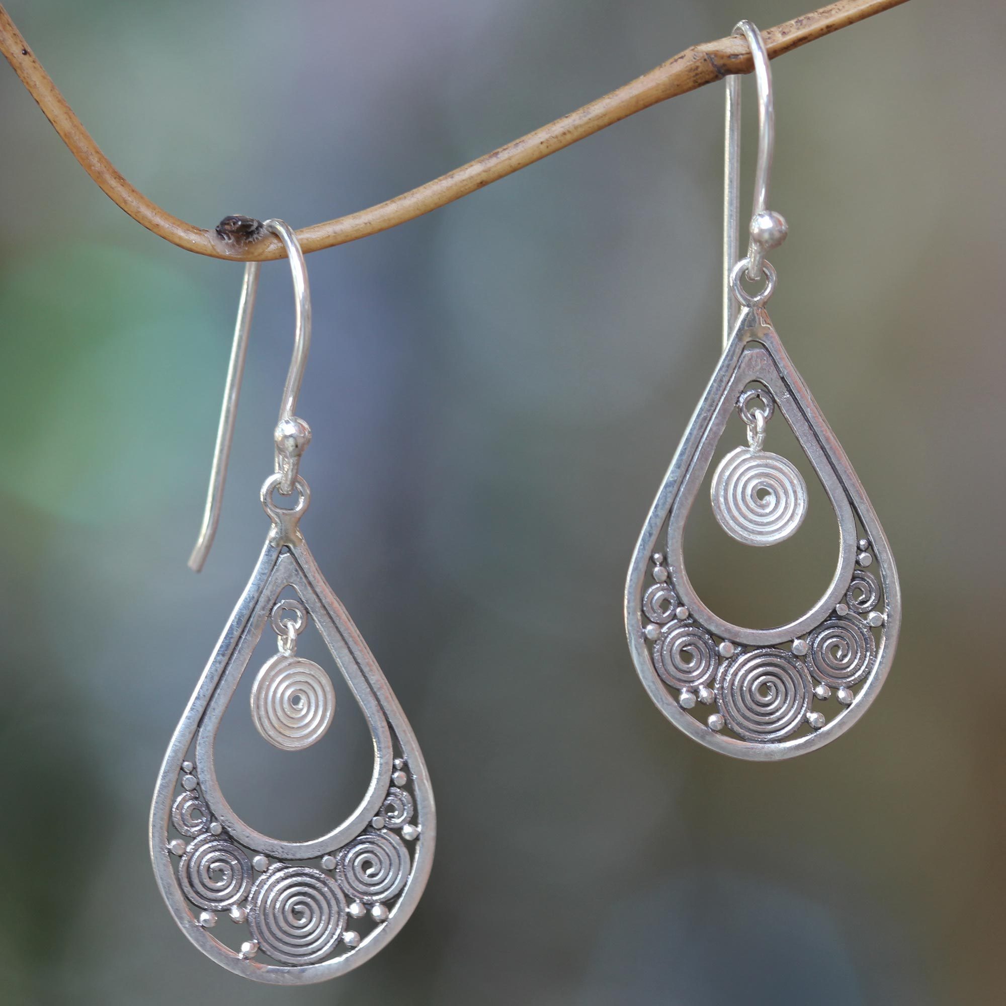 Hand Crafted Sterling Silver Dangle Earrings from Bali, 'Whirlpool'