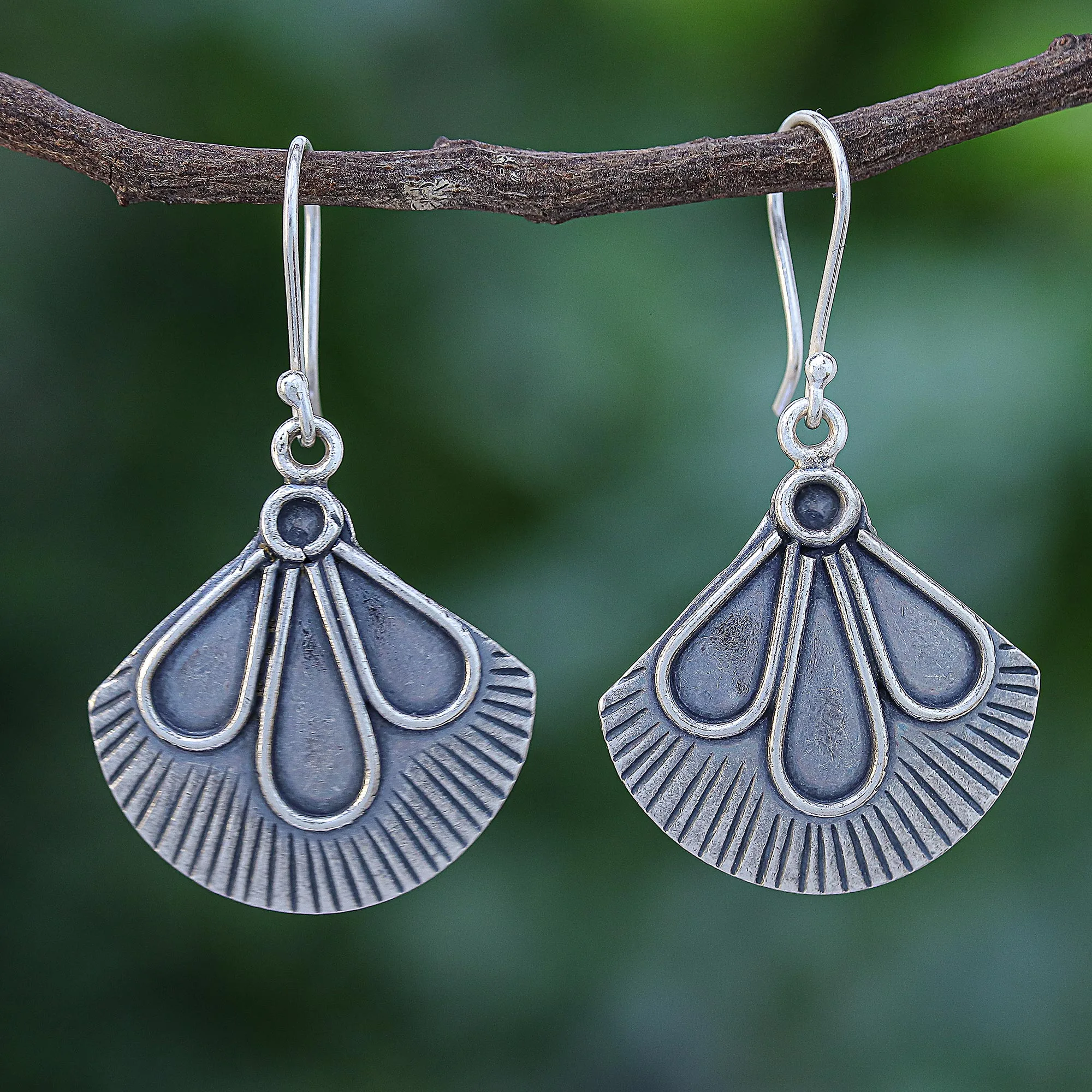 You'll feel as bright and happy as the summer sun in these pretty dangle earrings from Pakaon Sojintarit. Hand crafted from sterling silver, the earrings feature an elegant fan shape decorated with teardrop designs and emphasized with an oxidized finish.