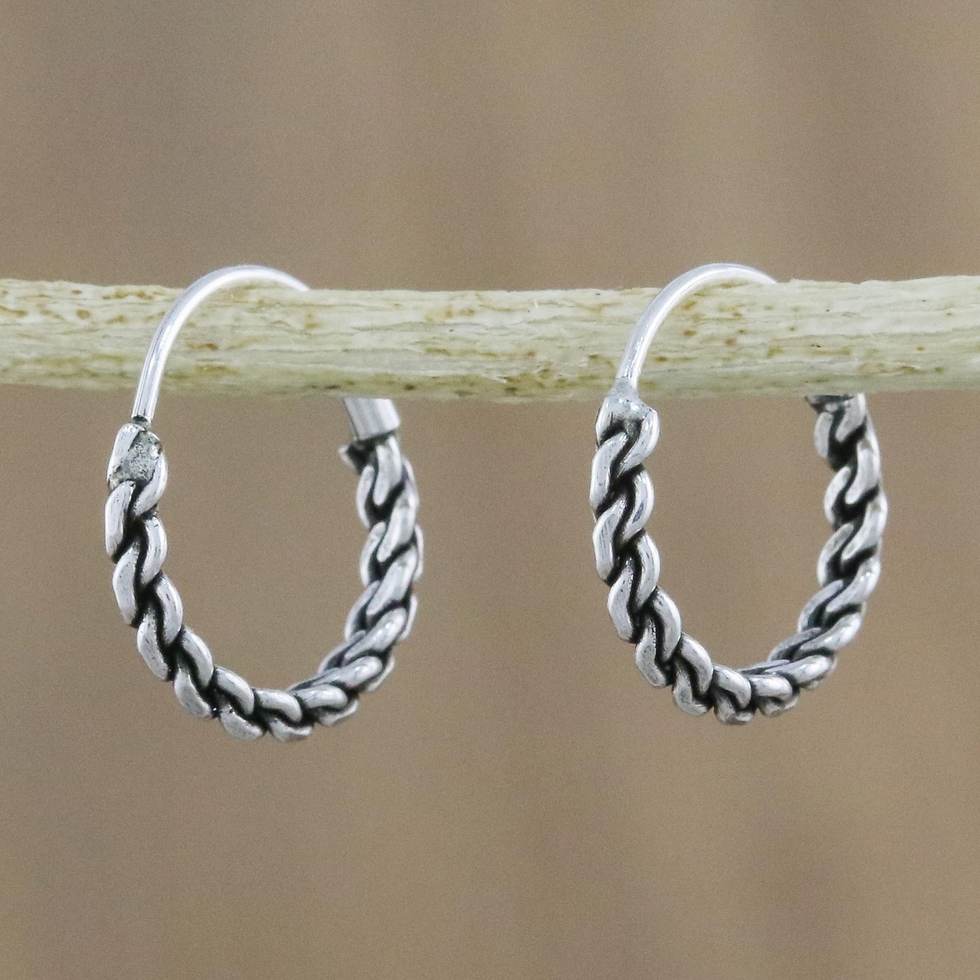 Hand Crafted Sterling Silver Hoop Earrings from Thailand, 'Trendy Chain'