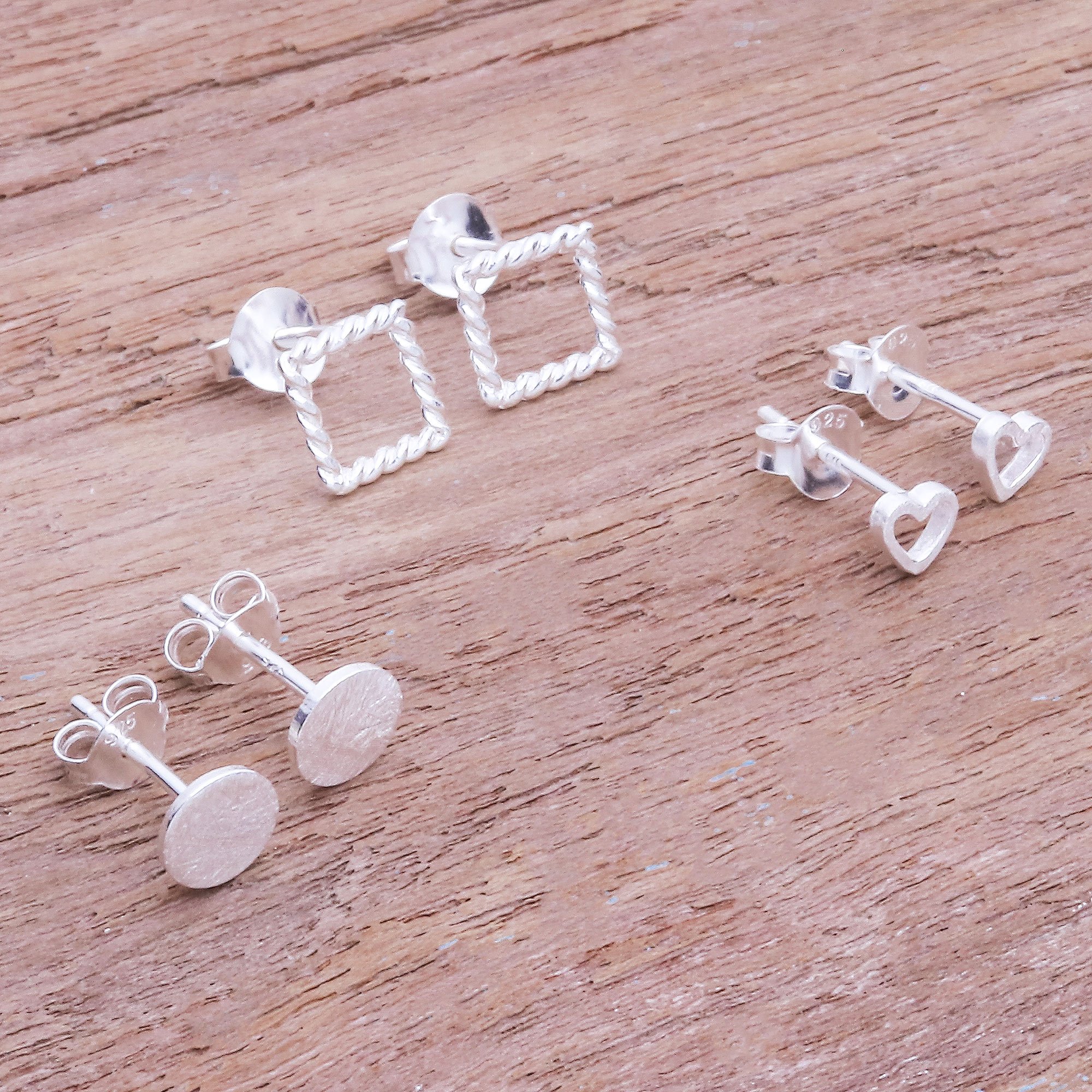Hand Crafted Sterling Silver Stud Earrings (Set of 3), 'Together At Last'