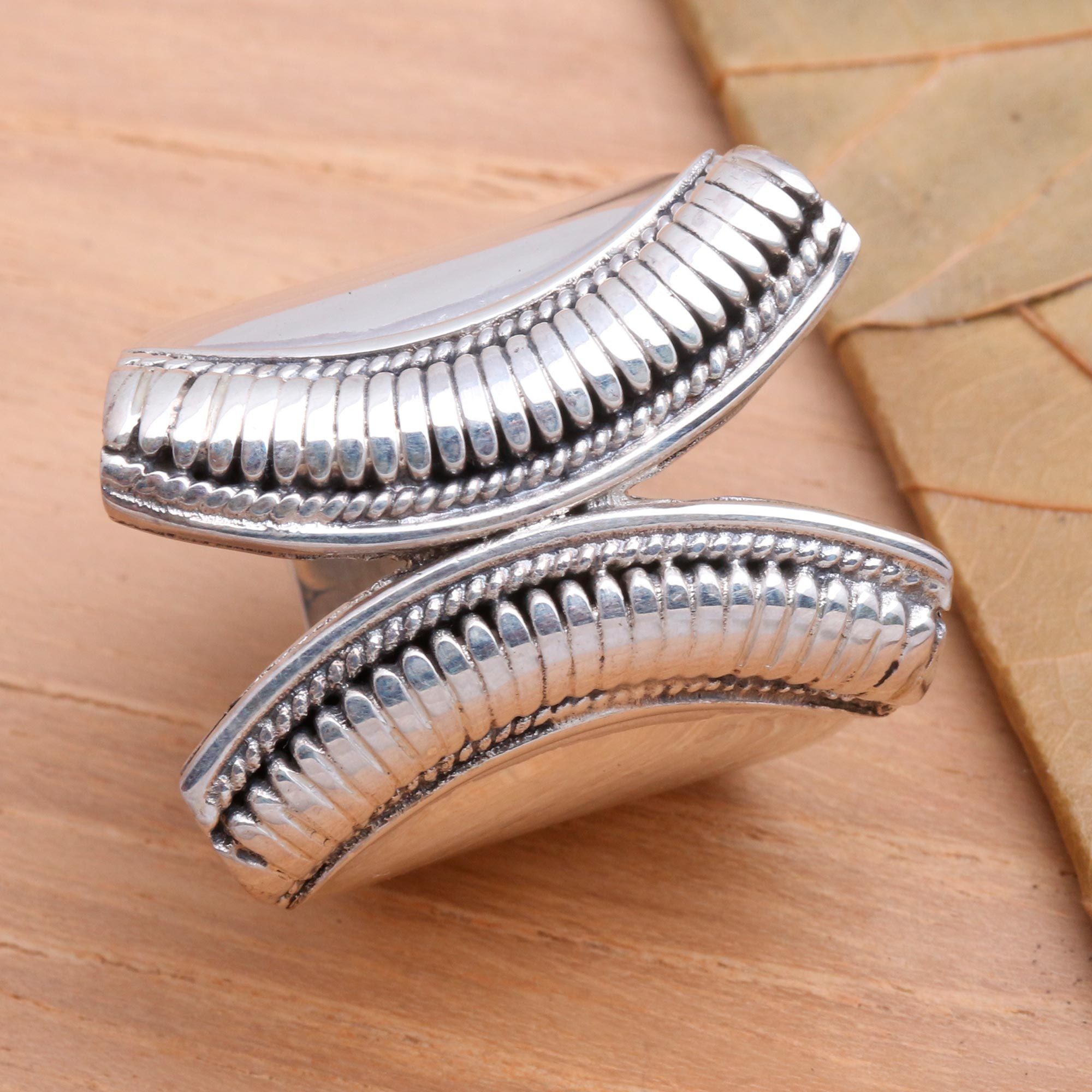 Hand Crafted Sterling Silver Wrap Ring, 'Encounters'