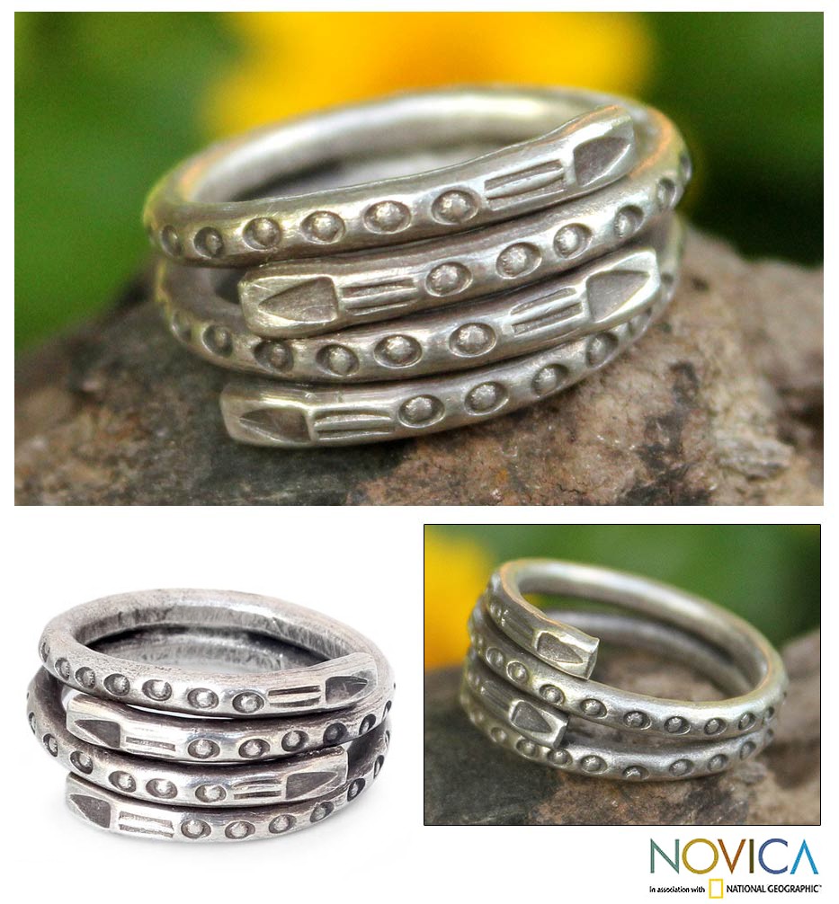 Sterling ribbons spiral into a mesmerizing wrap ring. Reinterpreting Thailand's hill tribe art, Achara presents a bold and beautiful design.