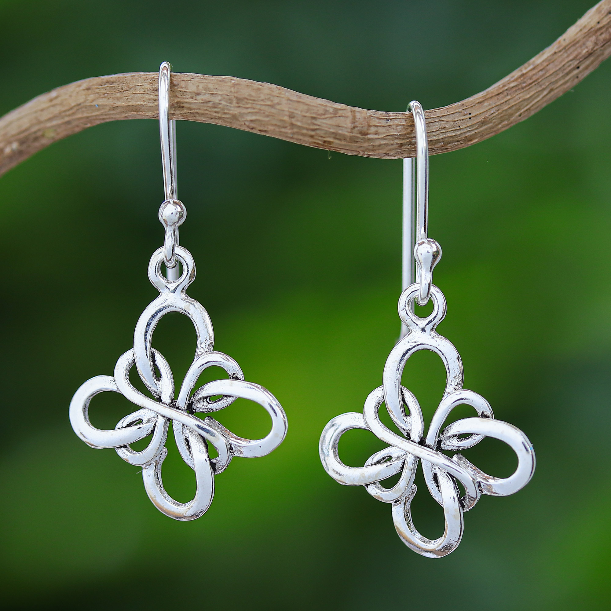 Sterling ribbons intertwine in an endless knot that evokes a flower. From Wadarat Supasirisuk in Thailand, these handcrafted earrings are delightful.