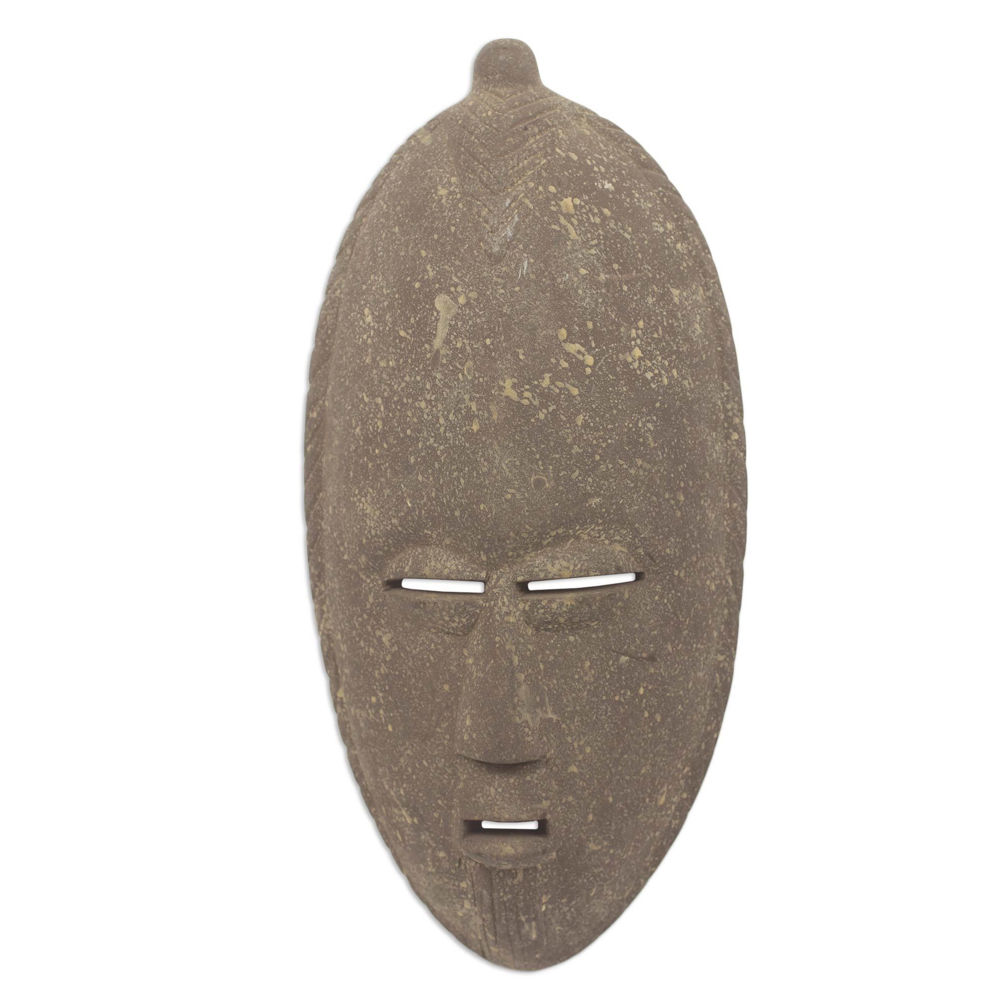 Hand Crafted Wood Mask, 'Positive Thinker'