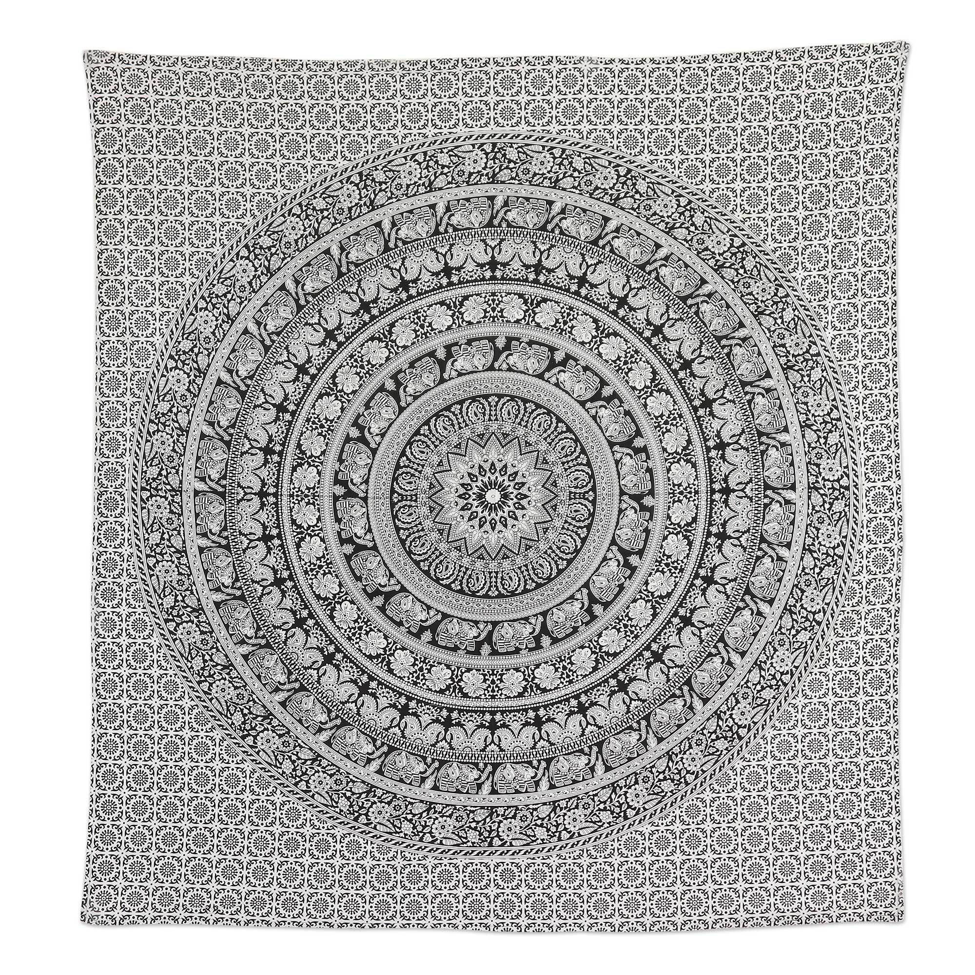 Using a splendid mandala motif, Indian artisans craft this black and white wall hanging from 100% cotton. Presented by Arti Sharma, the hanging features a screen-printed design embellished with petite elephants and flowers in a symmetrical pattern.