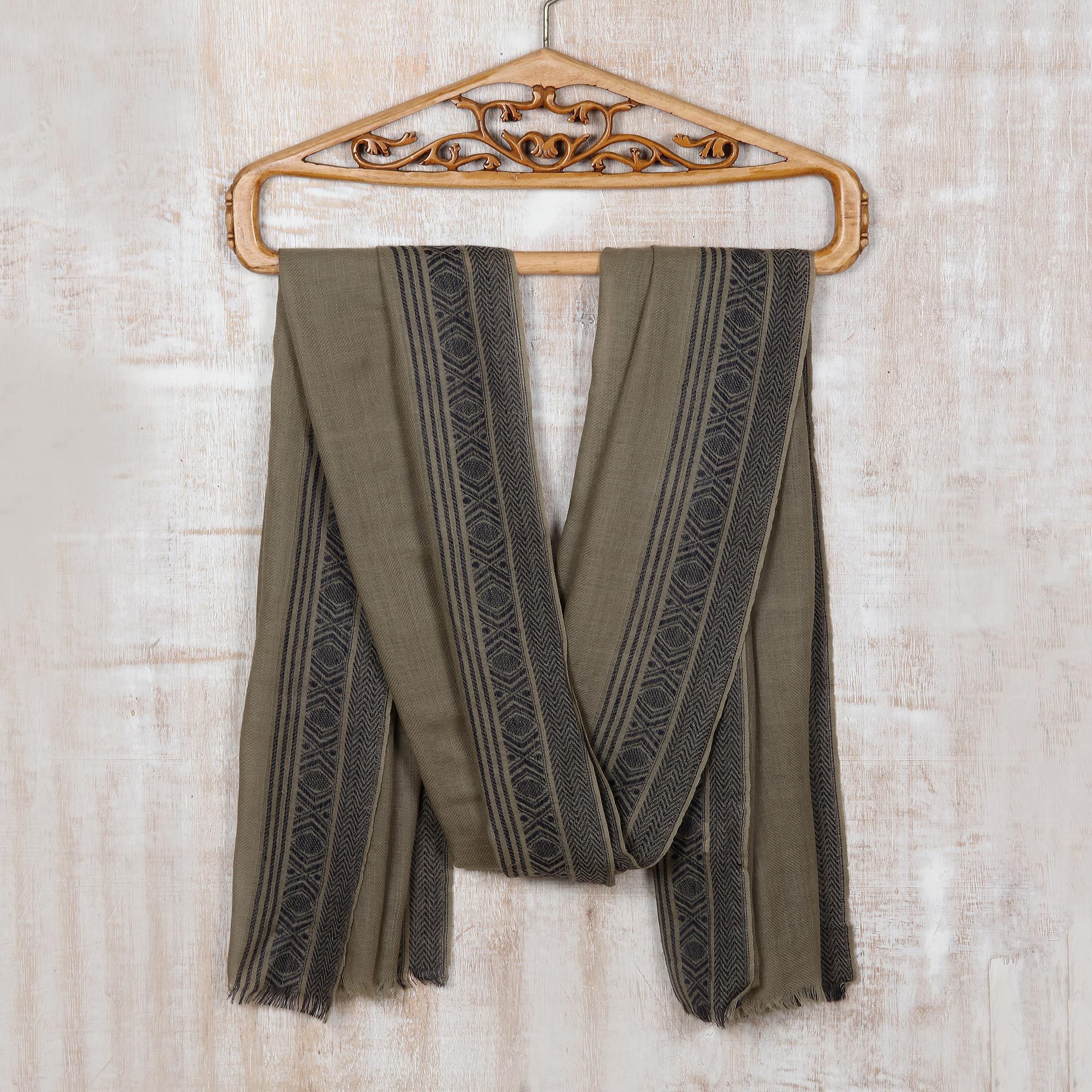 Hand Made Geometric Wool Shawl from India, 'North Side'