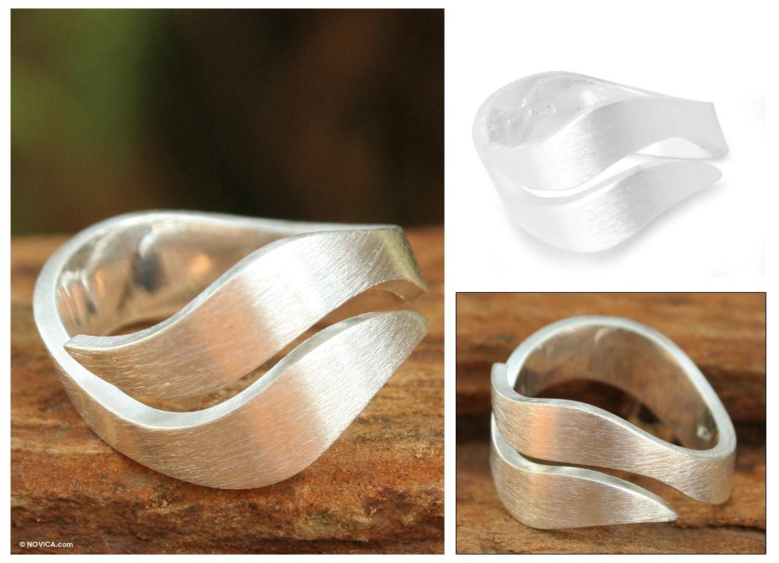 Hand Made Modern Sterling Silver Band Ring, 'Phuket Dreams'