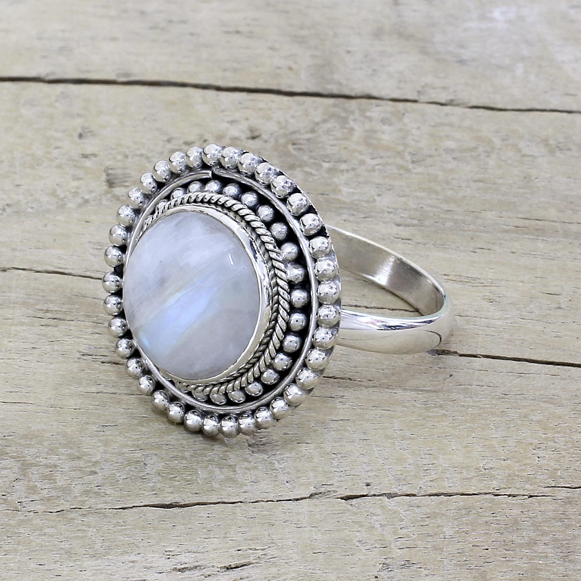 Hand Made Rainbow Moonstone Cocktail Ring from India, 'Rainbow Elegance'