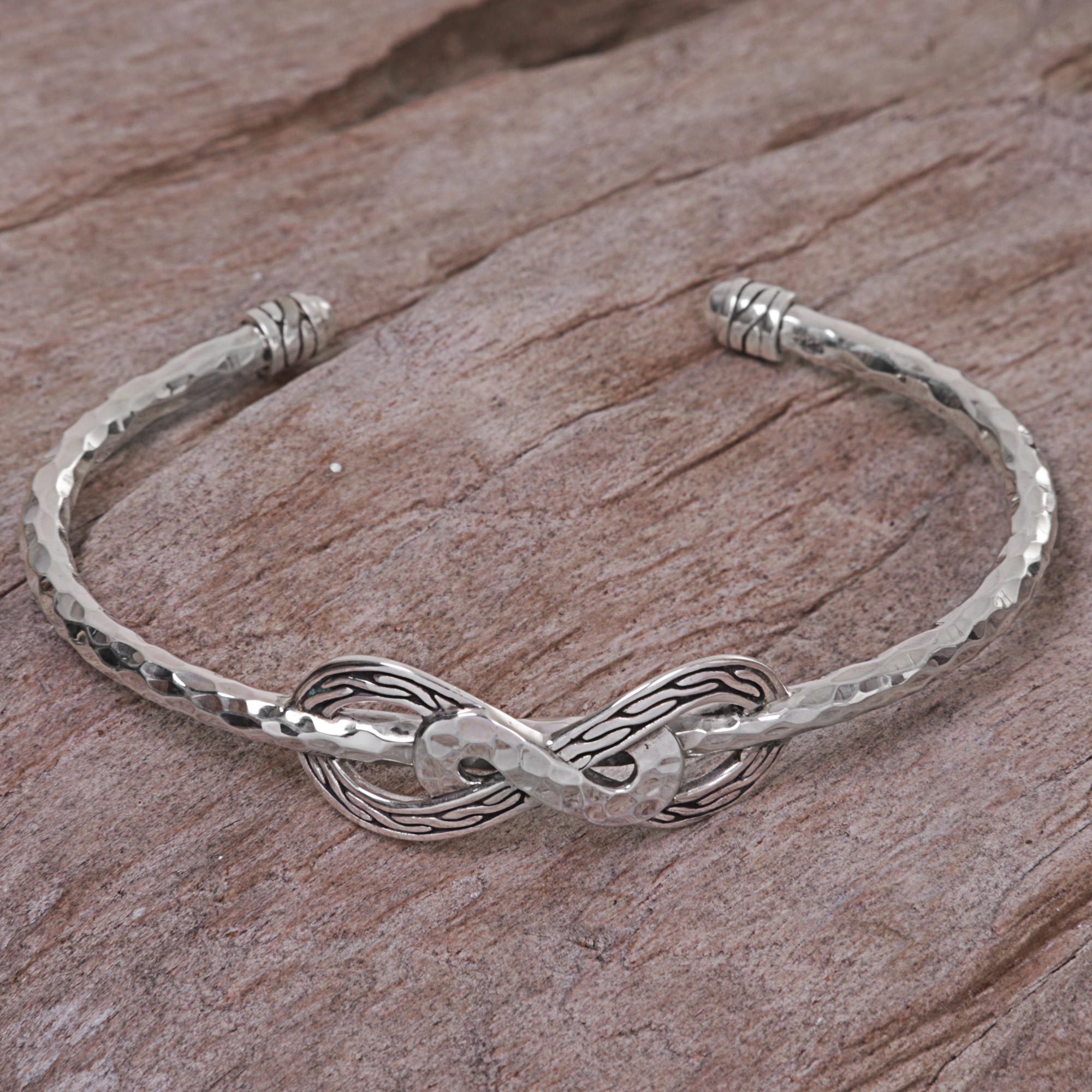 Hand Made Sterling Silver Cuff Bracelet from Indonesia, 'Infinity Mosaic'