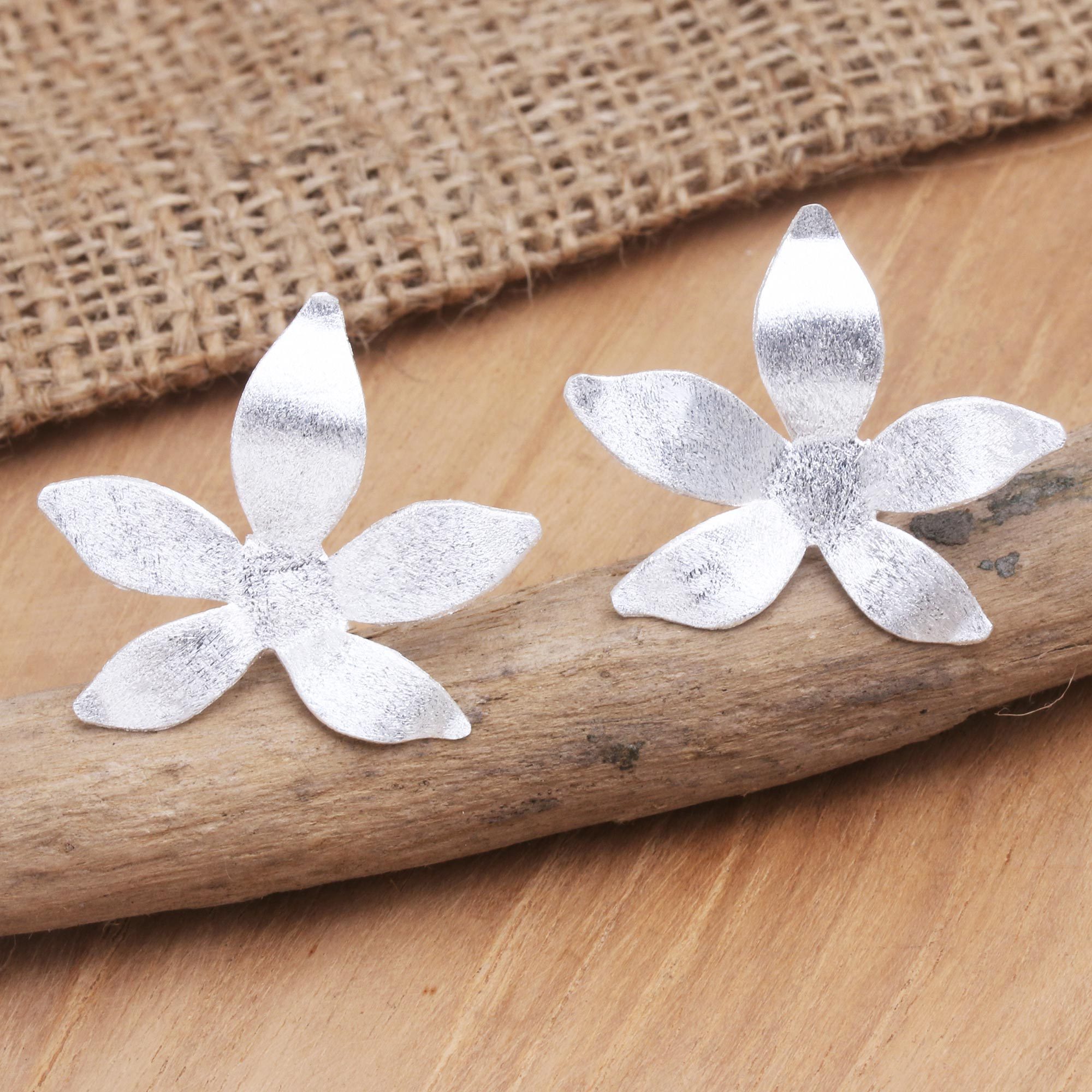 Incredibly bright and beautiful, Desi Antari's silver flower earrings will instantly charm you. Balinese artisan hand craft the earrings from sterling silver, treating the precious metal with matte polish for a timeless finish.