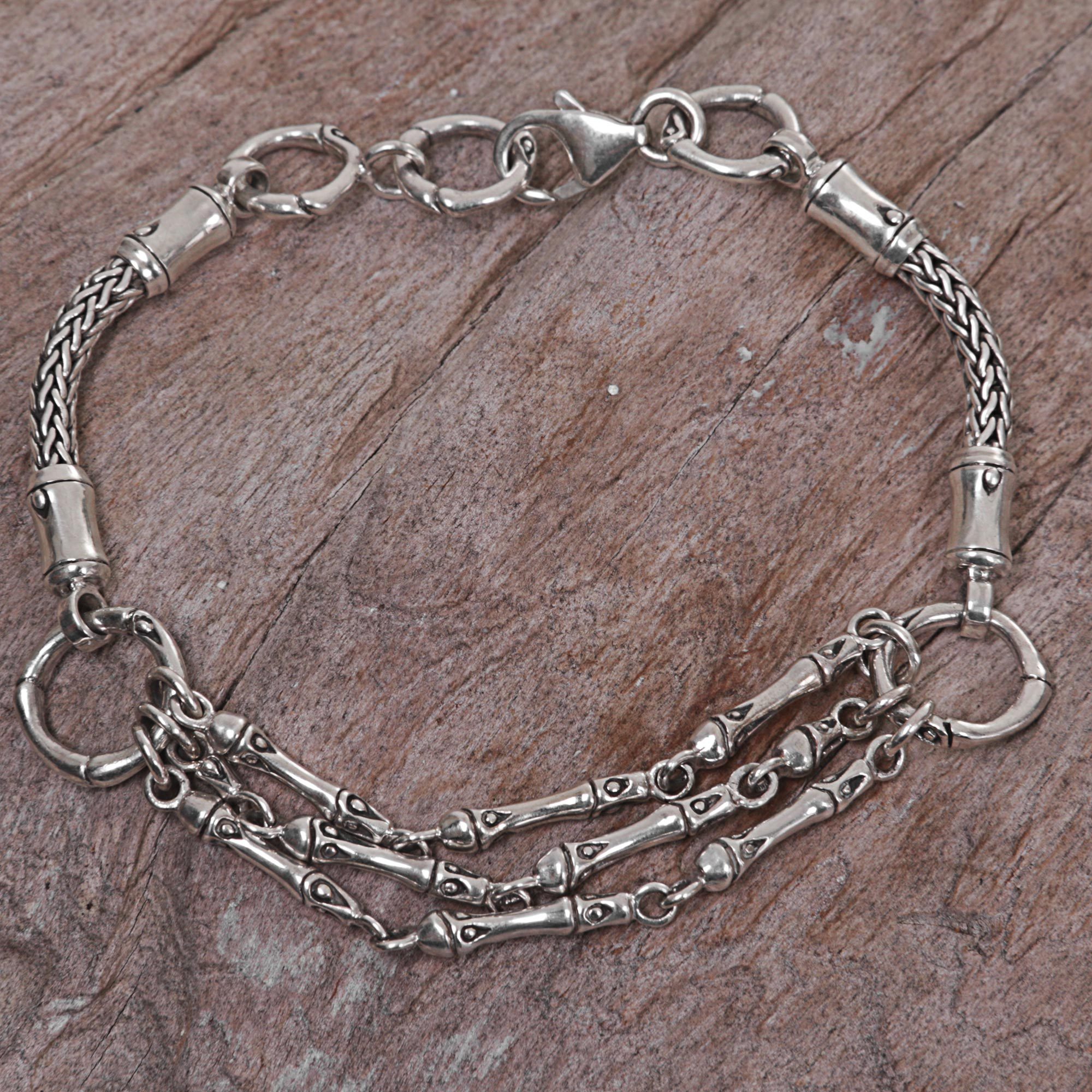 Named after the Balinese ocean town, this link bracelet is made from sterling silver. Indonesian artisan Nyoman Ariawan hand-crafts this piece featuring naga chains linked with bamboo-shaped chains.