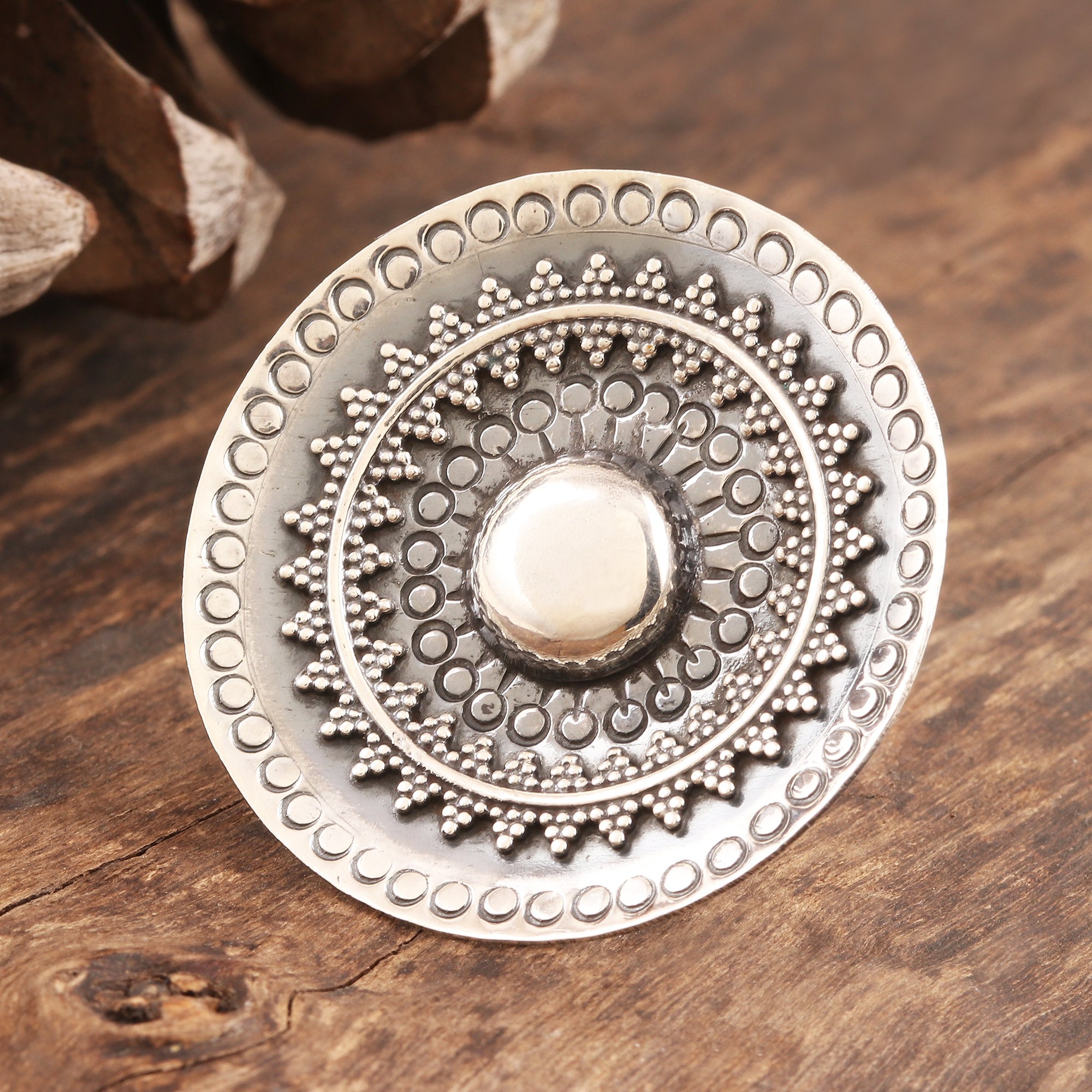 Hand Made Sterling Silver Mandala Cocktail Ring, 'Round Mandala'