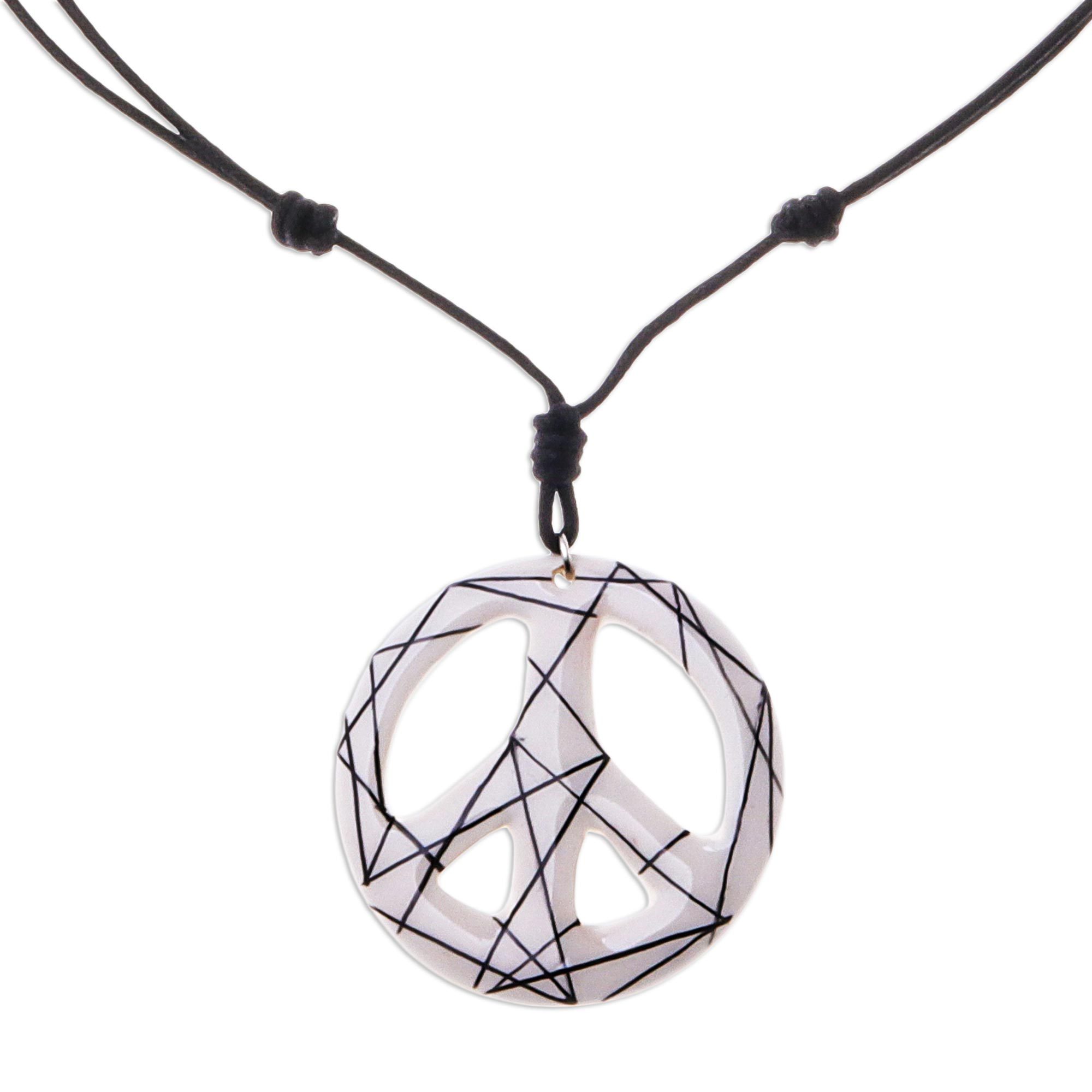 Bring peace wherever you go with this pendant necklace from Thailand. Crafted of ceramic, the pendant takes the form of a peace symbol, painted by hand with black lines over a white body. Napat Chotpruekchookul of Thailand designs this accessory, circling the neck with adjustable cotton cord.