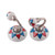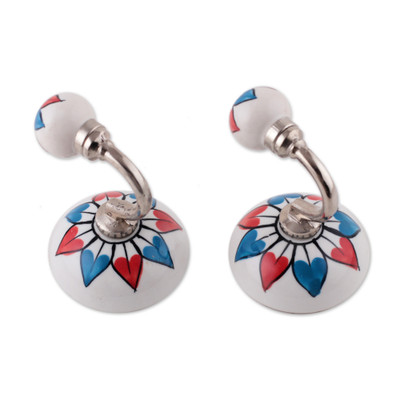 Hand-Painted Floral Blue and Red Ceramic and Iron Hook Pair, 'Jolly Petals'