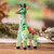 Hand-Painted Giraffe Floral Leaf-Themed Pinewood Figurine, 'Gorgeous Giraffe'