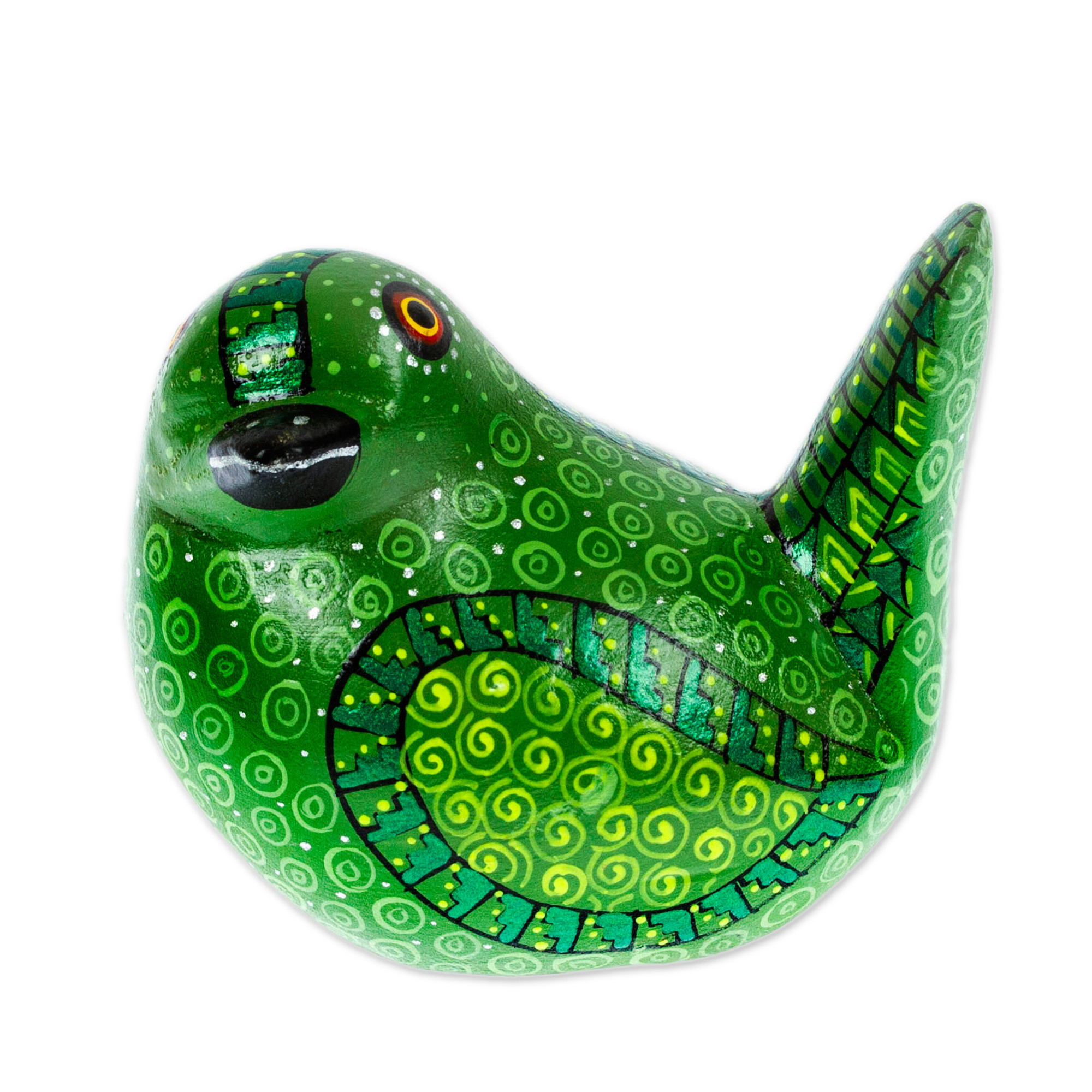 Hand-Painted Green Copal Wood Mockingbird Alebrije Figurine, 'Mockingbird of Luck'