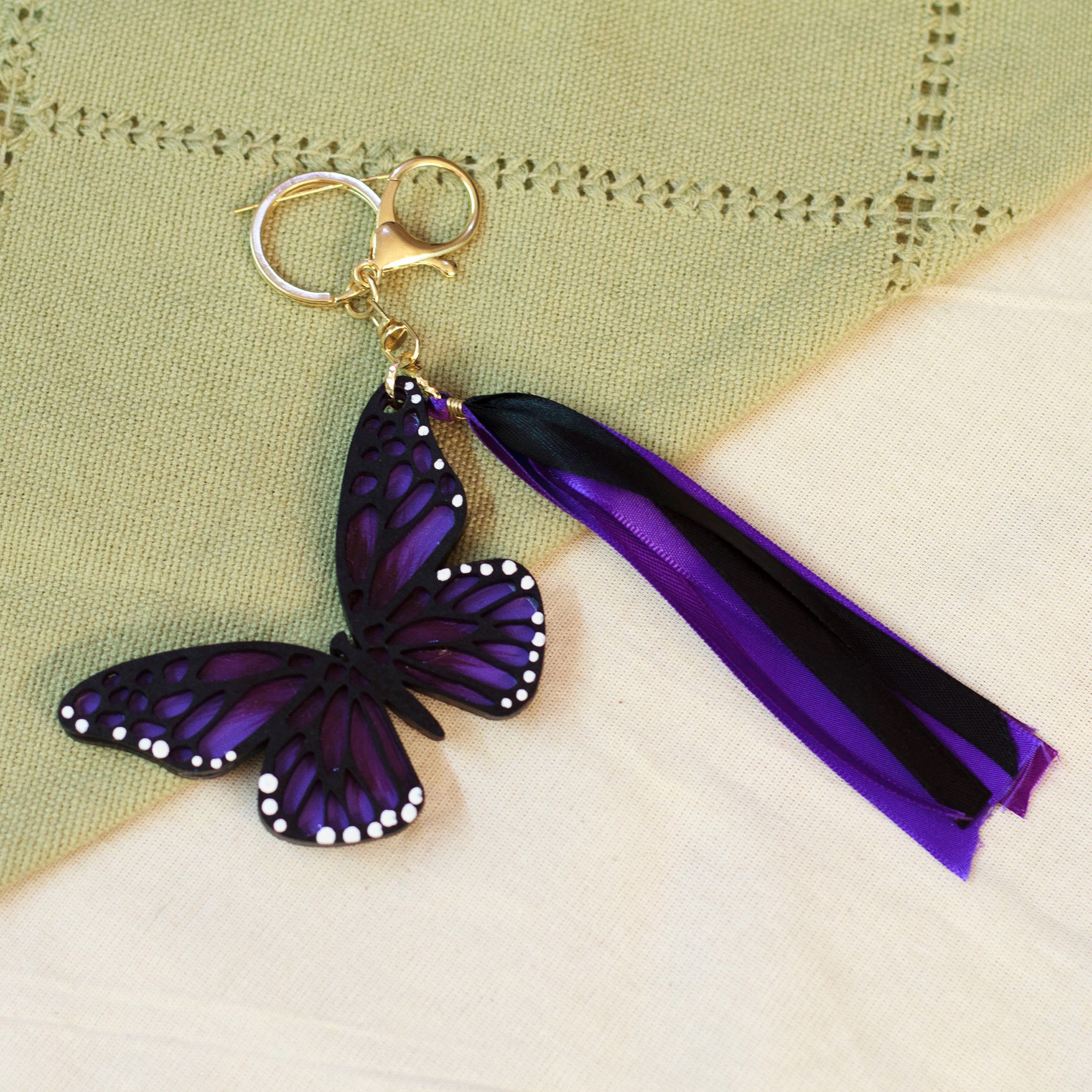 Hand-Painted Wood Butterfly Keychain and Bag Charm in Purple, 'Monarchs of Hope'