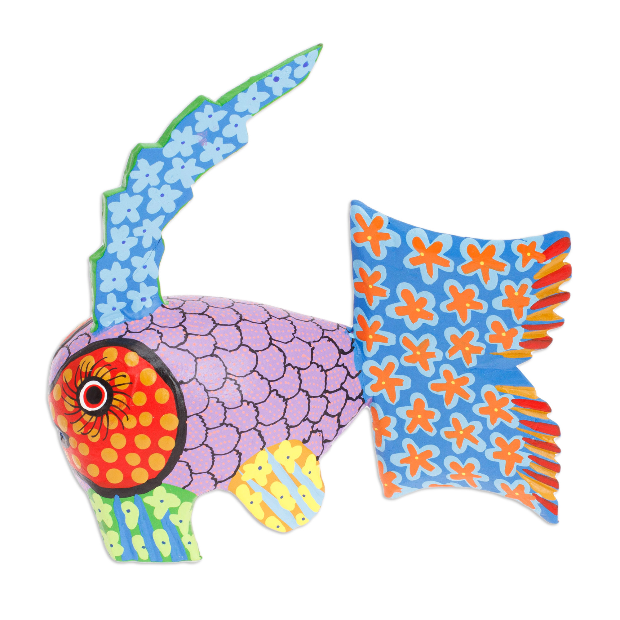 Radiate unique creative flair in your home with this delightful fish alebrije figurine, sculpted from copal wood and expertly hand-painted by artisans Jesus and Roxana Hernandez. Lovely motifs in an array of vibrant colors adorn this charming decorative accent, a fabulous tribute to Mexico's revered handicrafts.