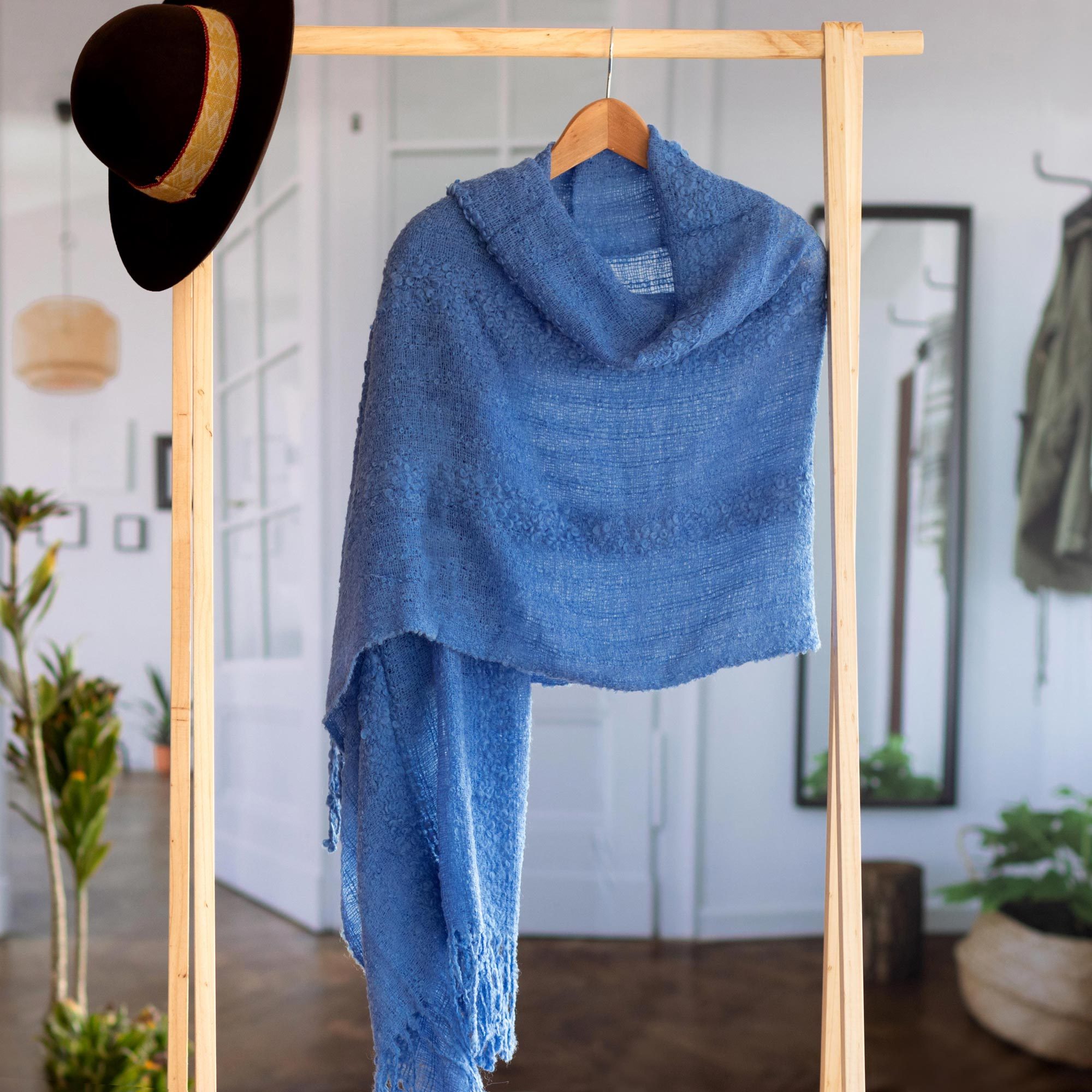 Hand Woven Cerulean Baby Alpaca Blend Shawl from Peru, 'Magic Morning'
