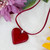 Handcrafted Adjustable Fused Glass Heart Pendant Necklace, 'My Scarlet Love'