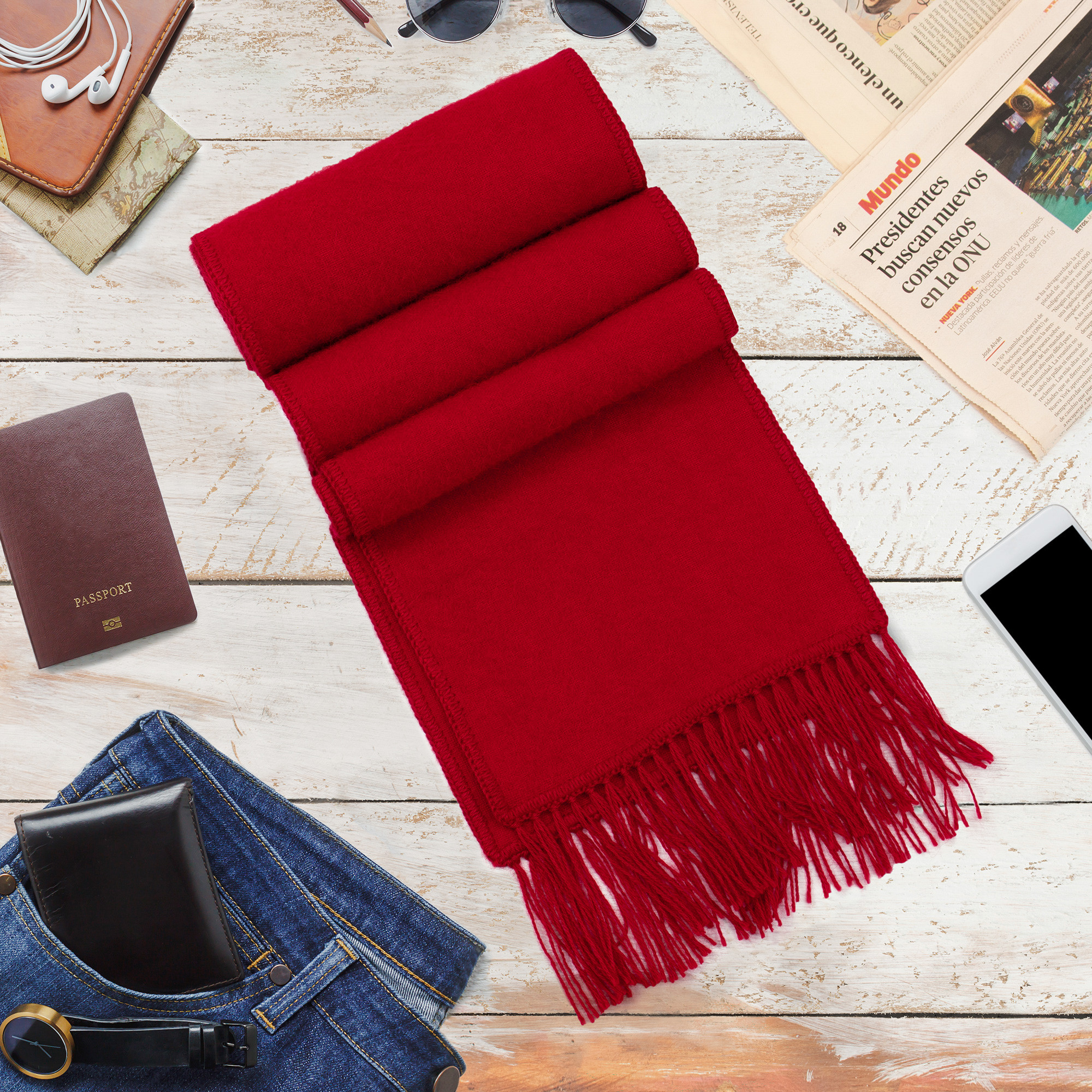 Handcrafted Alpaca Wool Blend Solid Scarf, 'Apple Red'