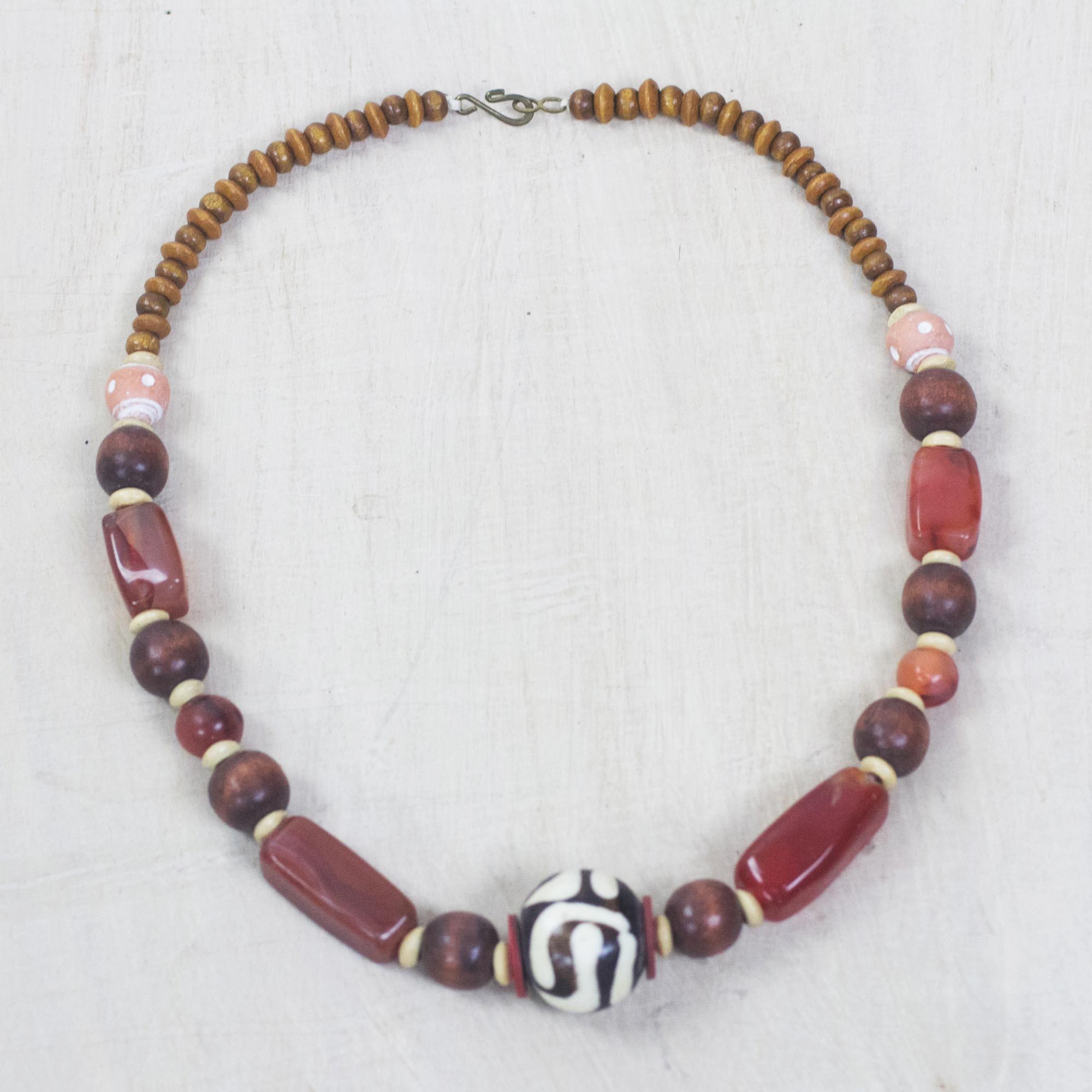 Handcrafted Beaded Agate and Bone Necklace from Africa, 'Maneray'