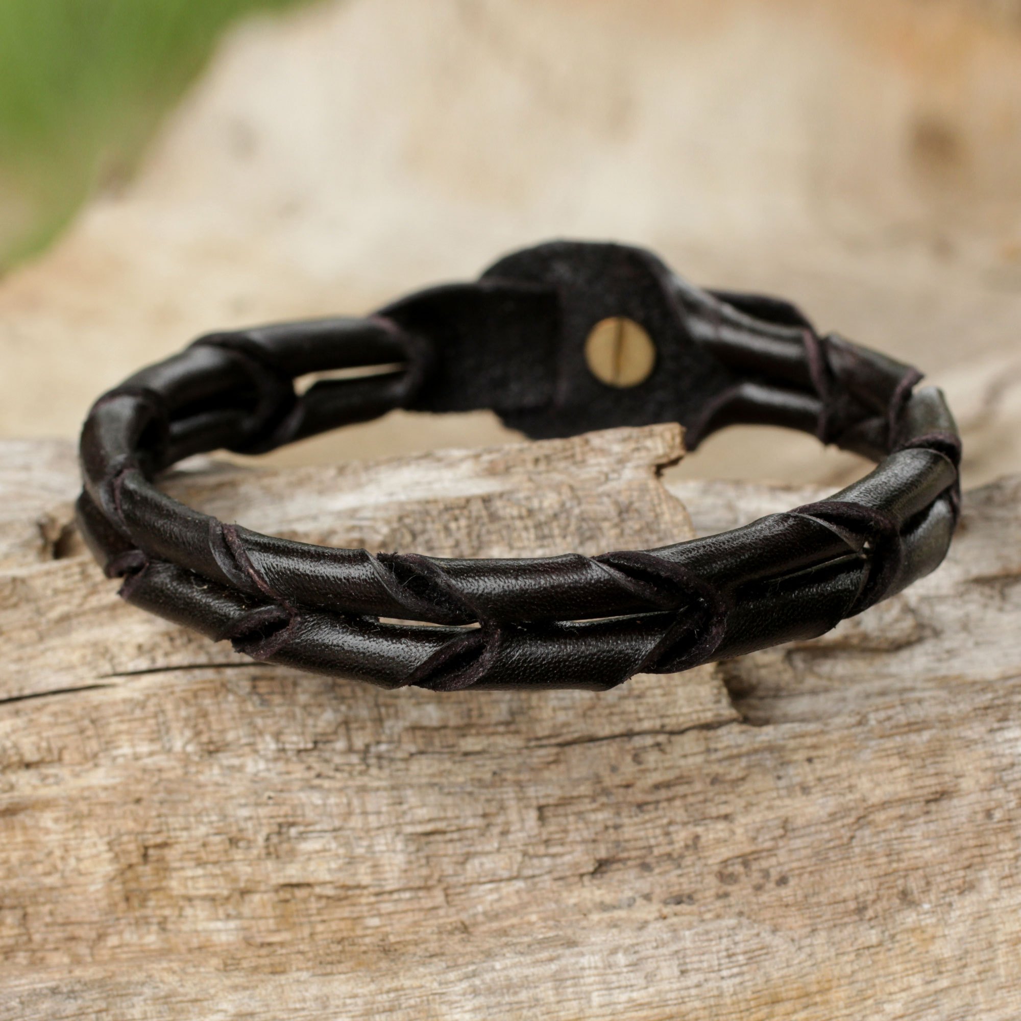 Sleek and handsome, this bracelet from Thailand is designed for men. Chaloemphon crafts the black leather wristband by hand, creating a braided effect.