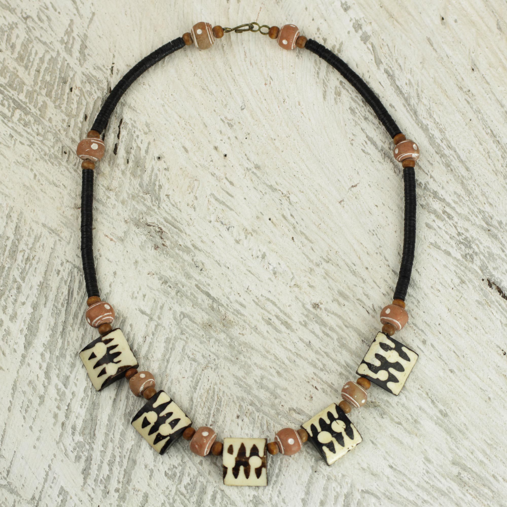 Handcrafted Bone and Recycled Bead Necklace, 'Amaria'