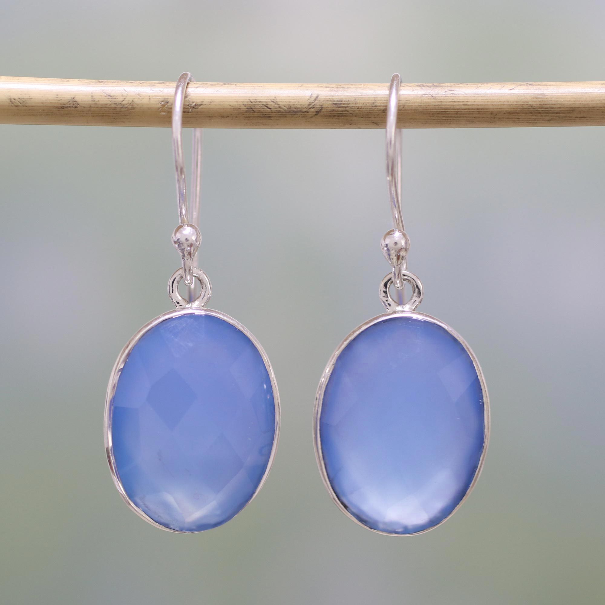 Handcrafted Chalcedony and Sterling Silver Dangle Earrings, 'Blue Serenity'