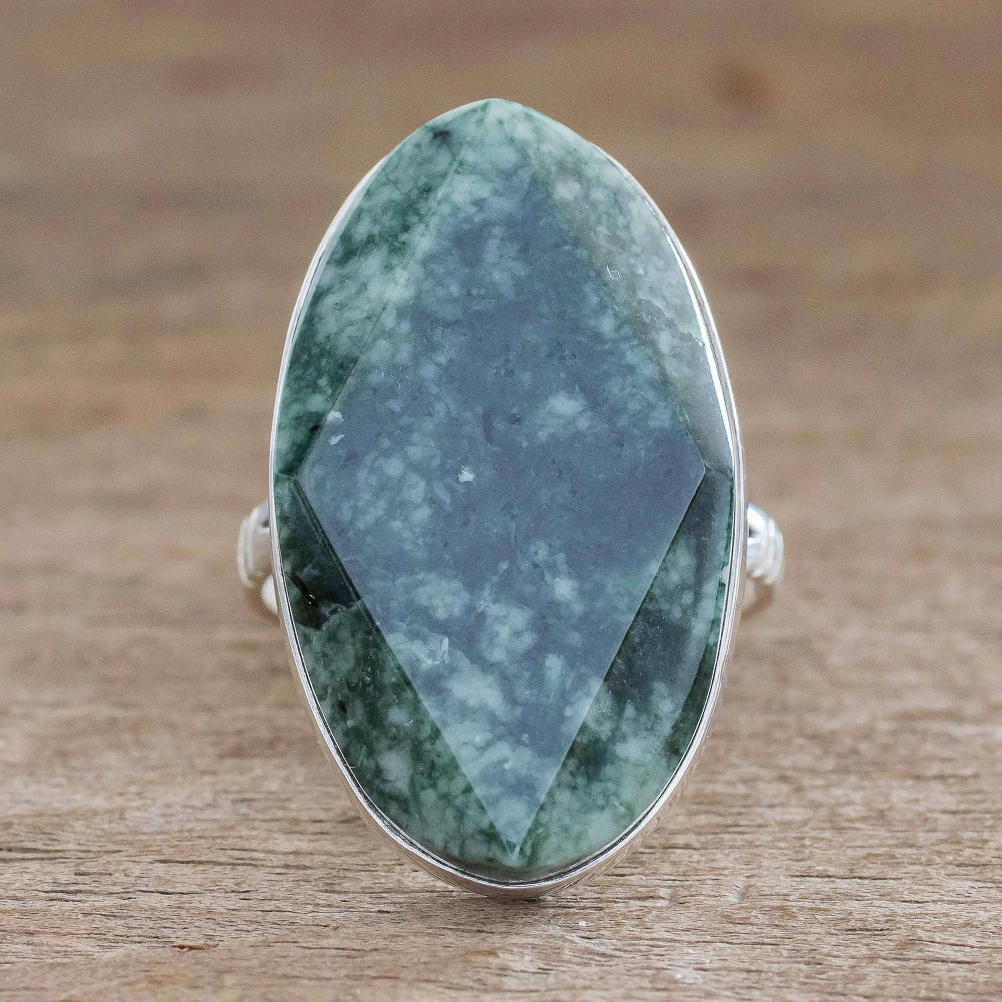 Handcrafted Jade and Sterling Silver Cocktail Ring, 'Forest Stone'