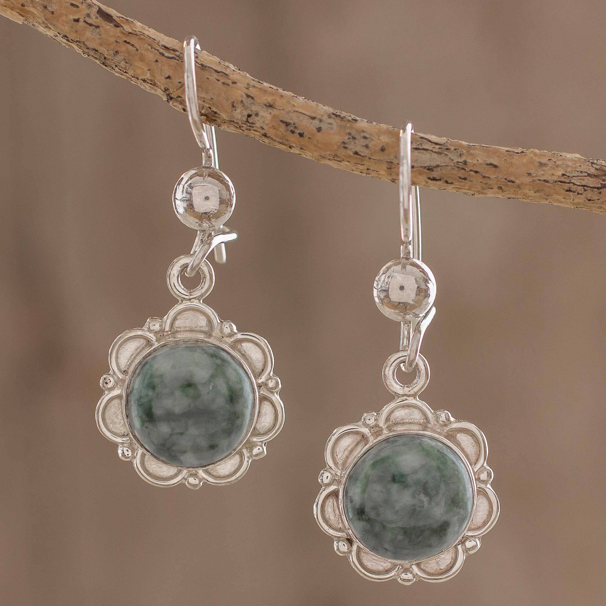Handcrafted Jade and Sterling Silver Earrings, 'Sacred Jade'